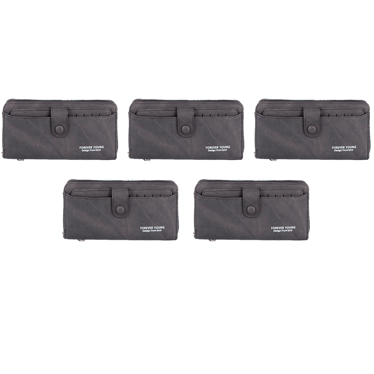 Contiene: cinco billeteras de un mismo modelo en color negro.