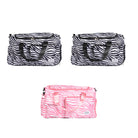 Contiene tres bolsos de un mismo modelo en diferentes colores.