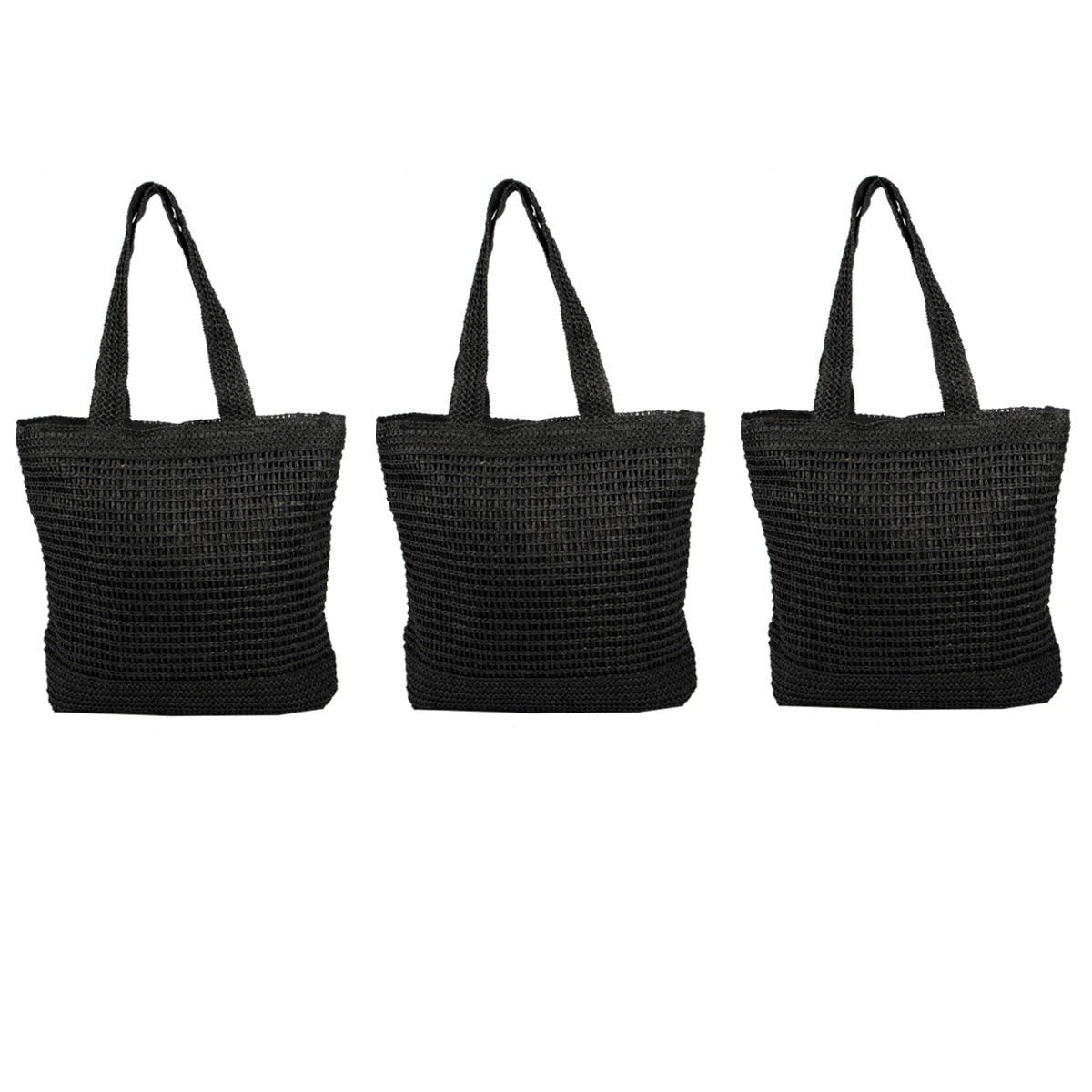 Contiene 3 bolsos playeros de un mismo modelo, en color negro