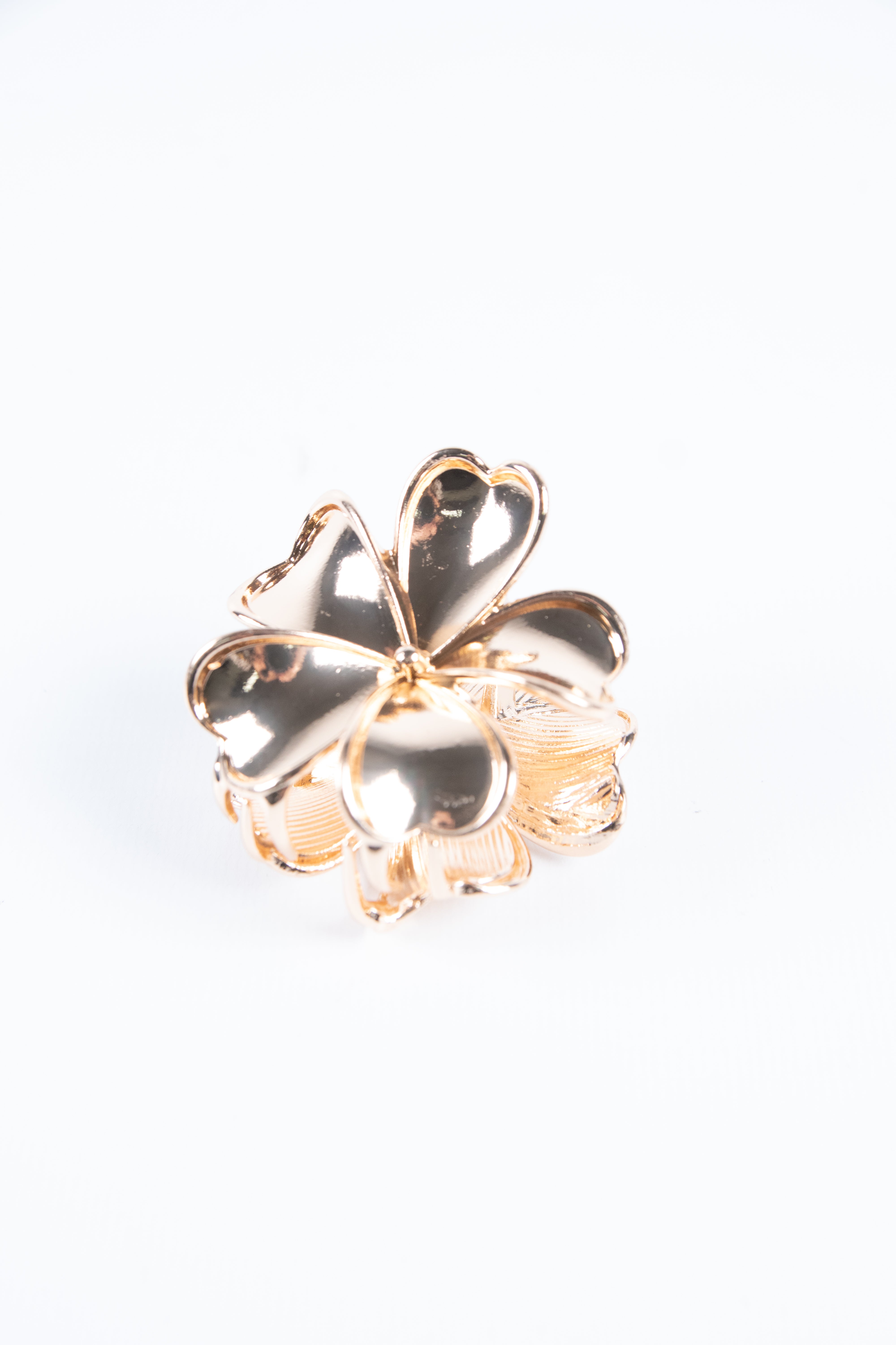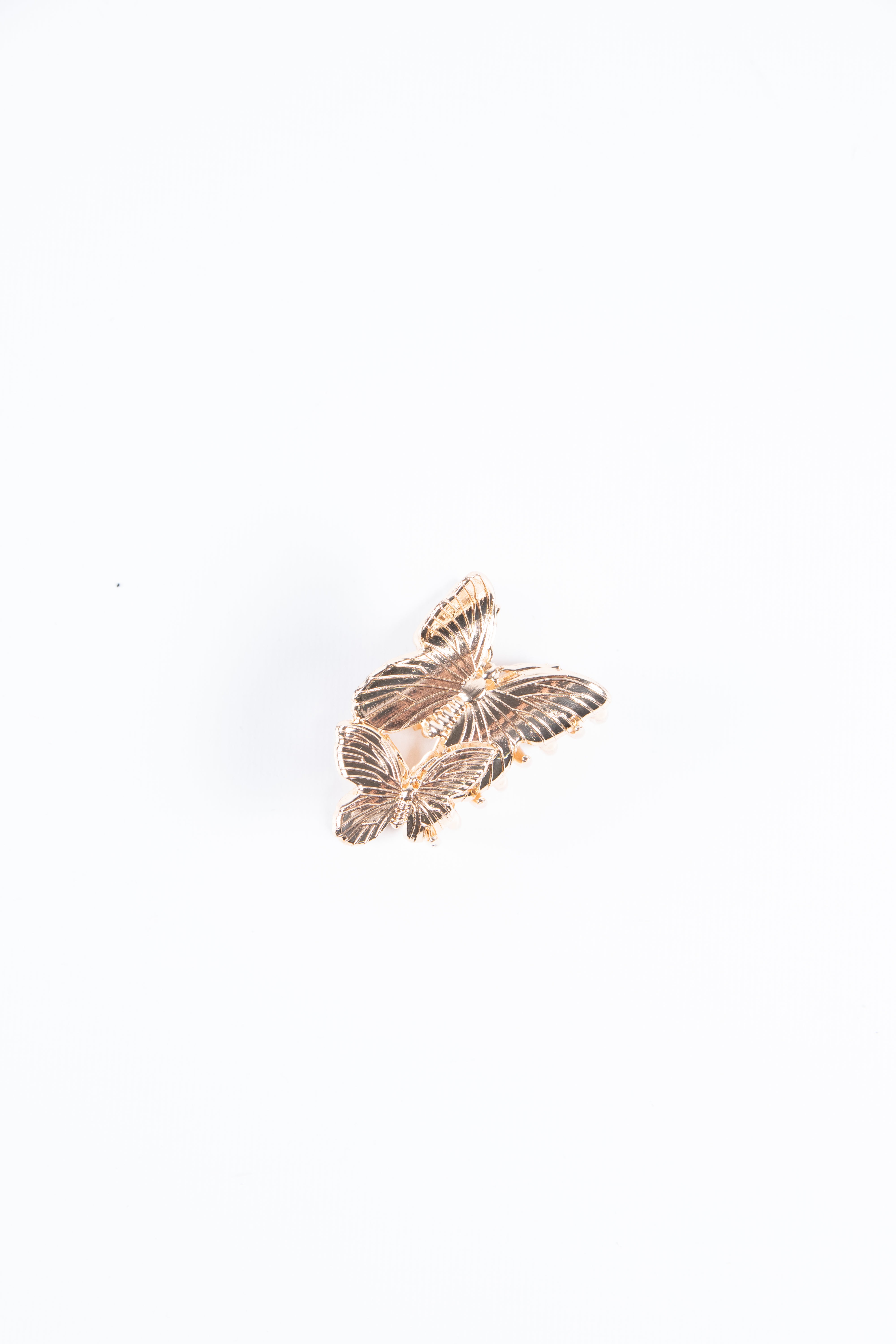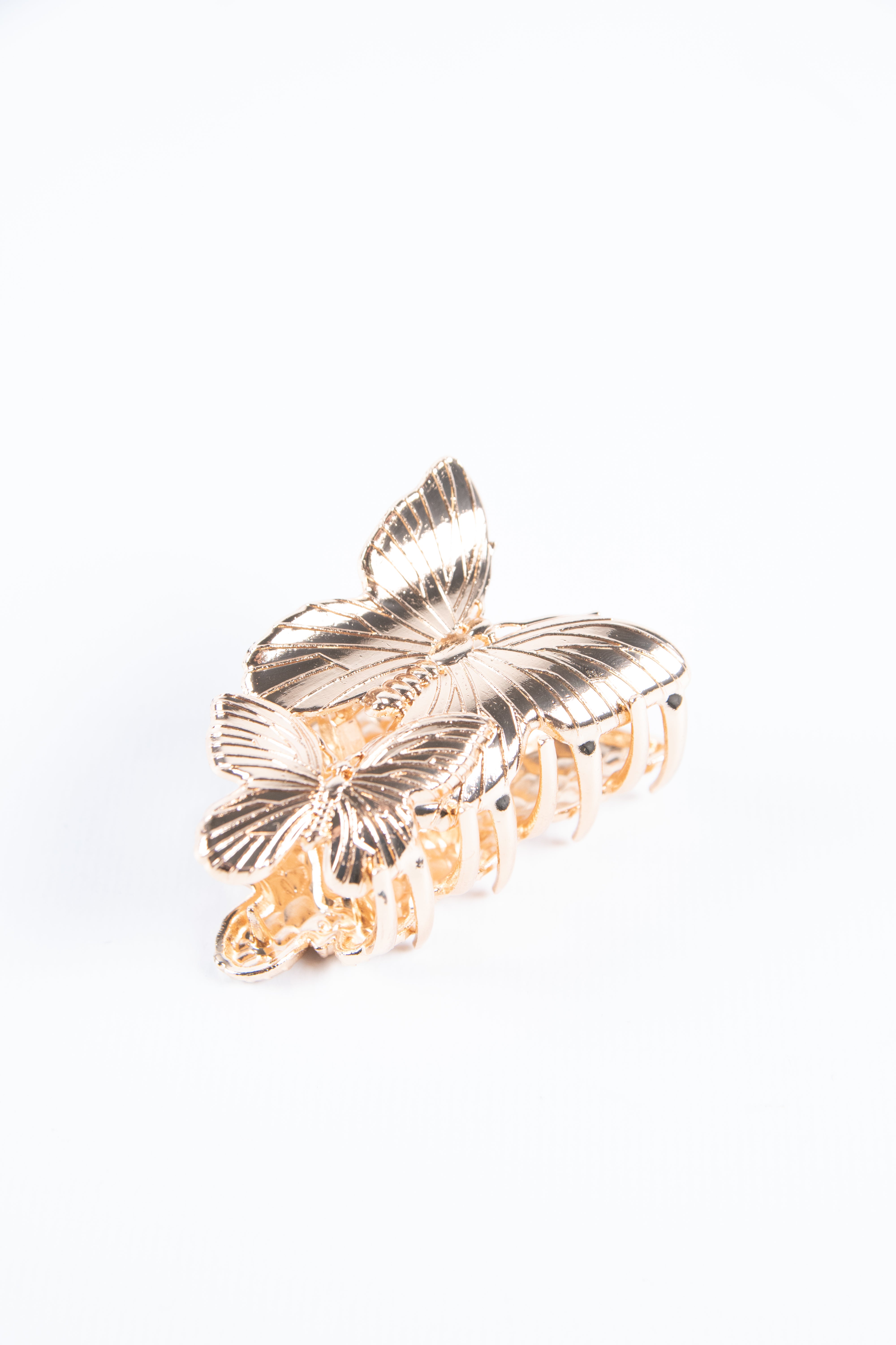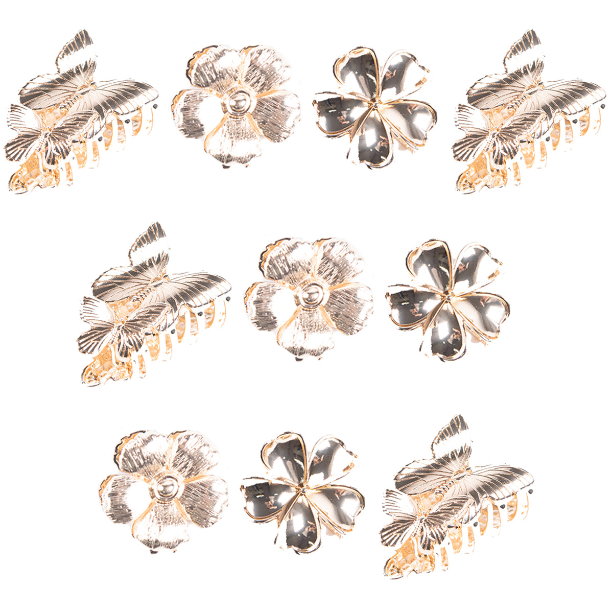 Contiene diez broches de pelo metalizados de diferentes modelo en dorado.