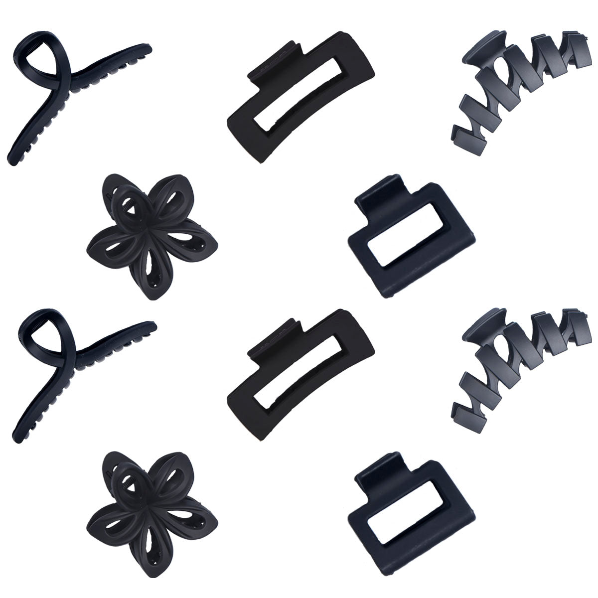 Contiene 10 broches de pelo de diferentes modelos en color negro.