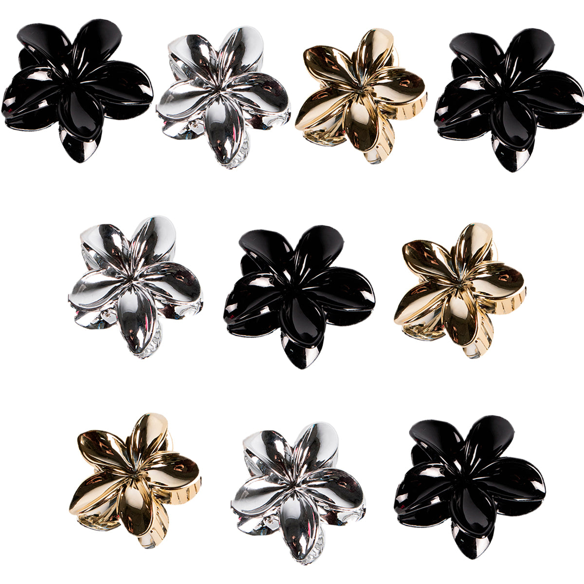 Contiene diez broches de pelo de un mismo modelo en diferentes colores. SE ENVIA EN NEGRO Y DORADO.