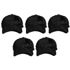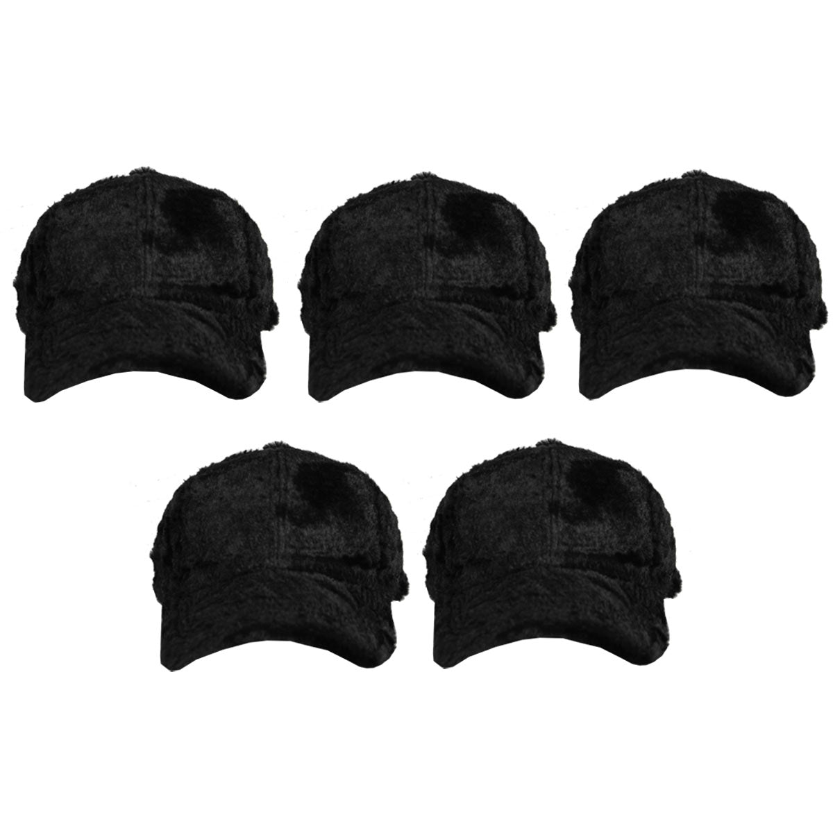 Contiene cinco gorras de piel de un mismo modelo en color negro.