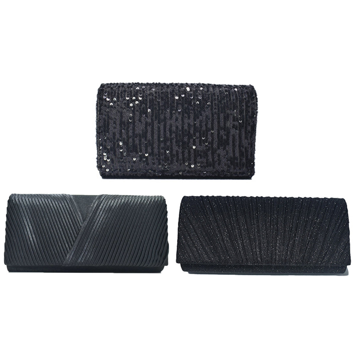 Contiene tres sobres de fiesta plisados de diferentes modelos.
