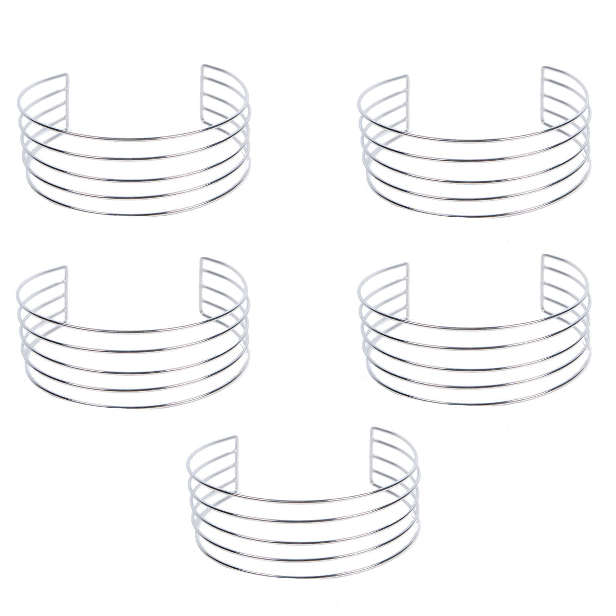 Contiene 5 collares de un mismo modelo en color plateado.