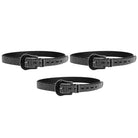 Contiene tres cintos faja importados de un mismo modelo en color negro con tachas plateadas.