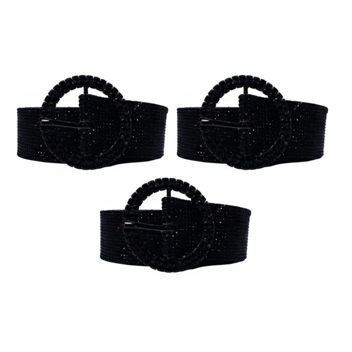 Contiene: 3 cintos lisos con strass de color negro