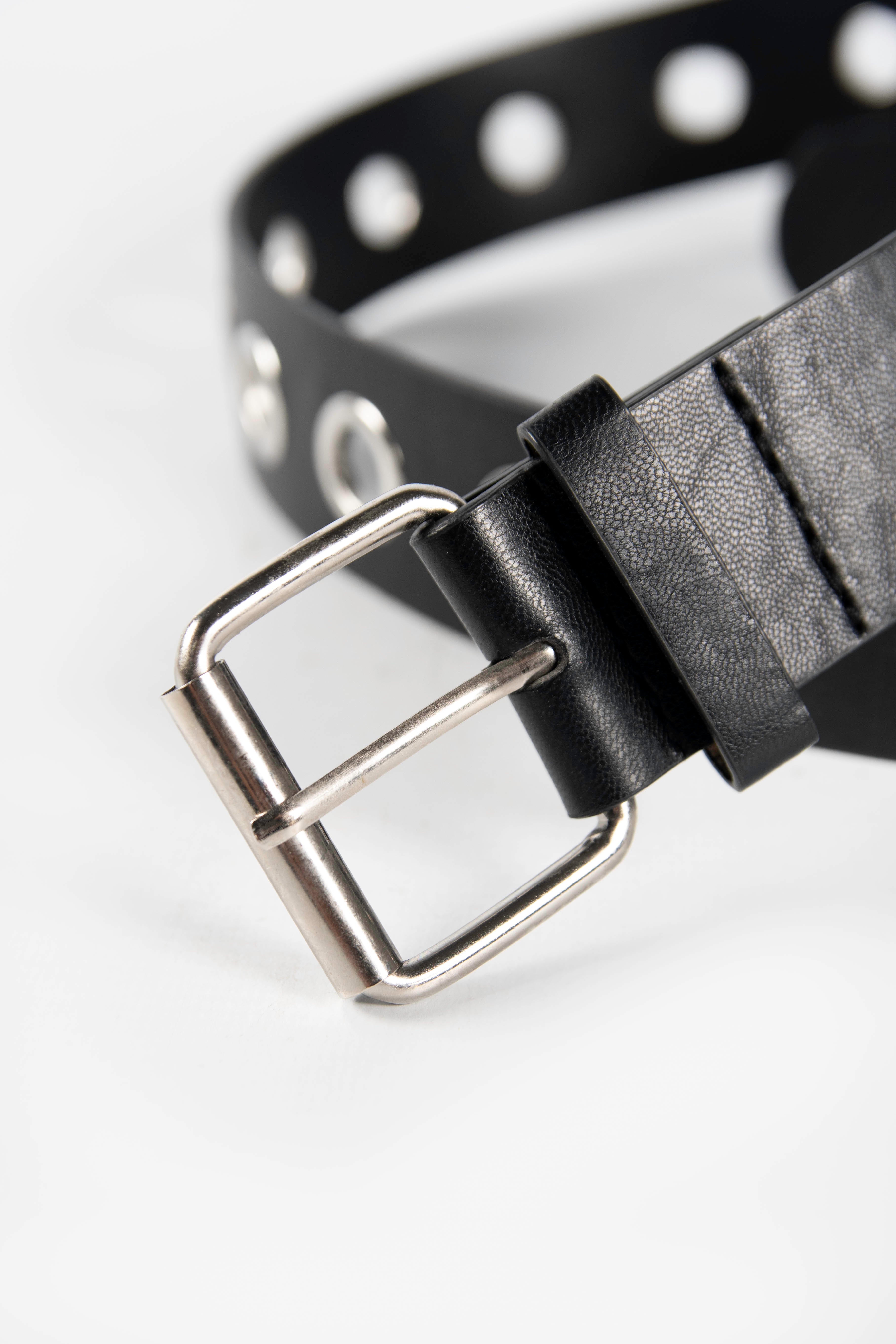 Contiene: 5 cintos negros con tachas de un mismo modelo