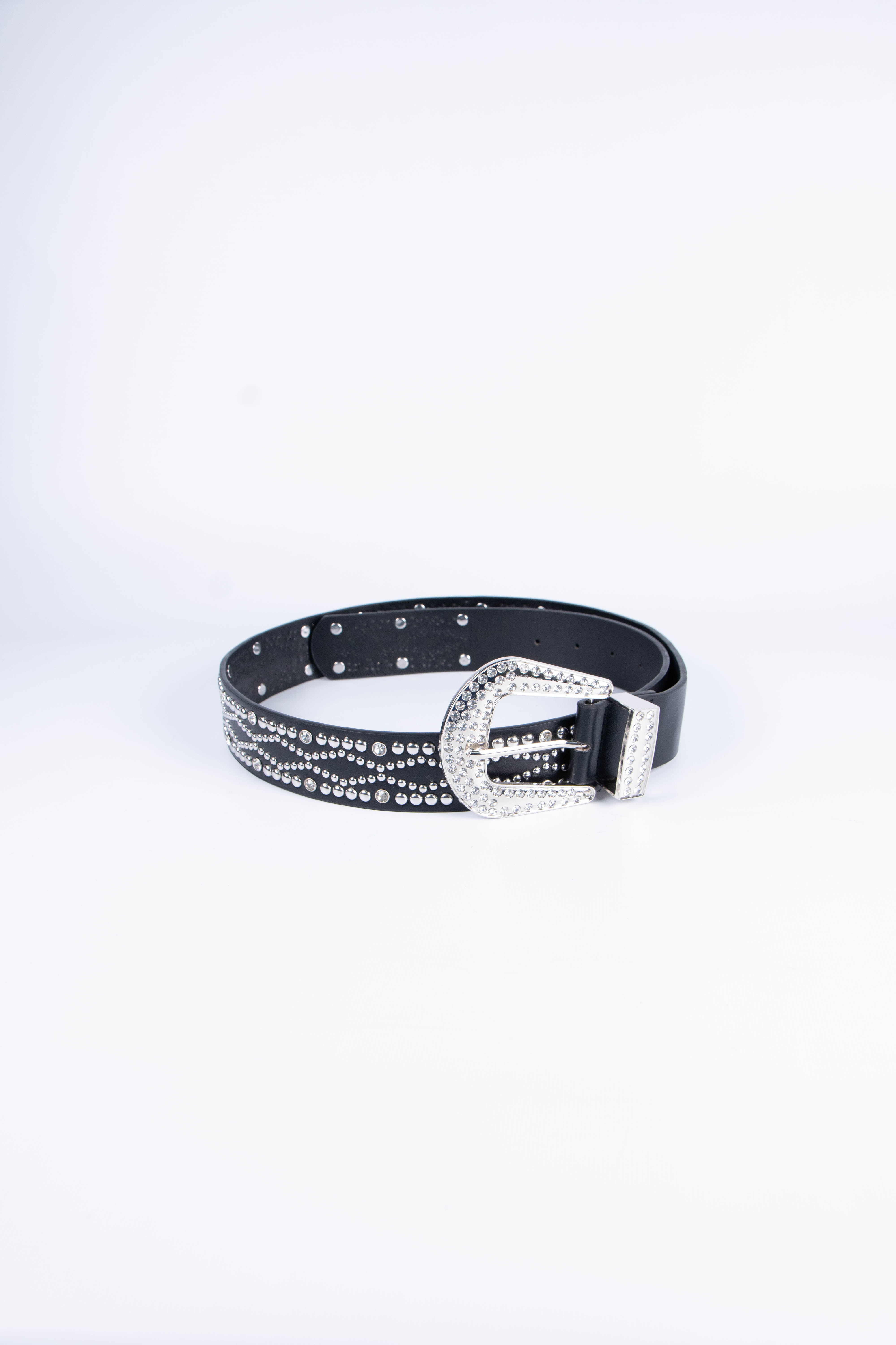 Contiene cinco cintos con tachas y strass de un mismo modelo.