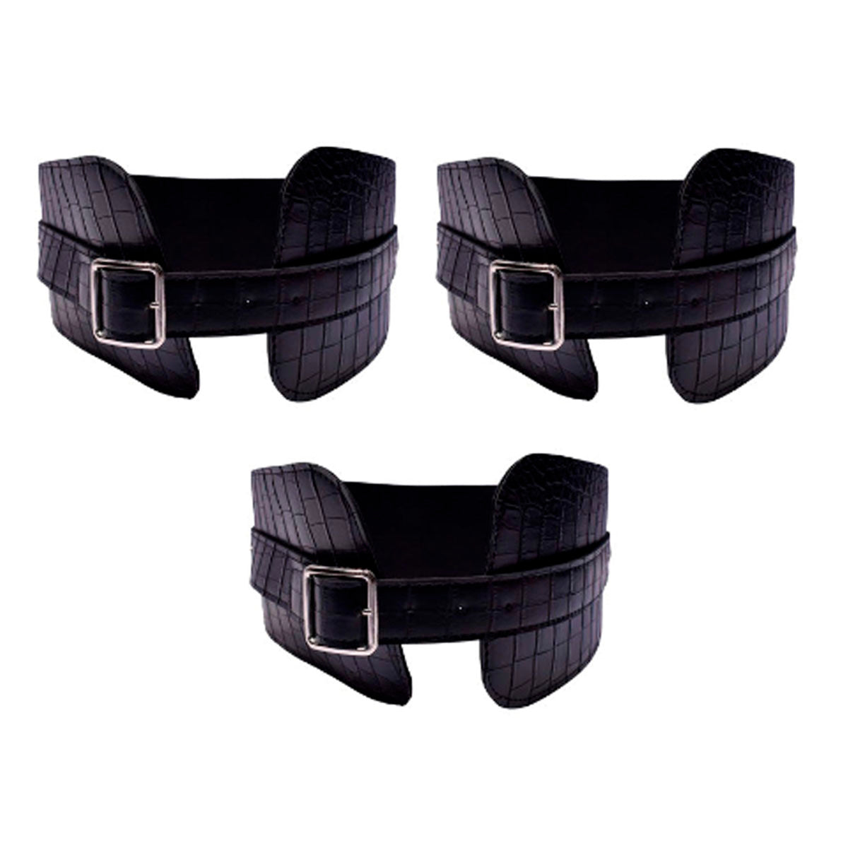 Contiene 3 cintos faja de un mismo modelo en color negro con hebilla plateada.