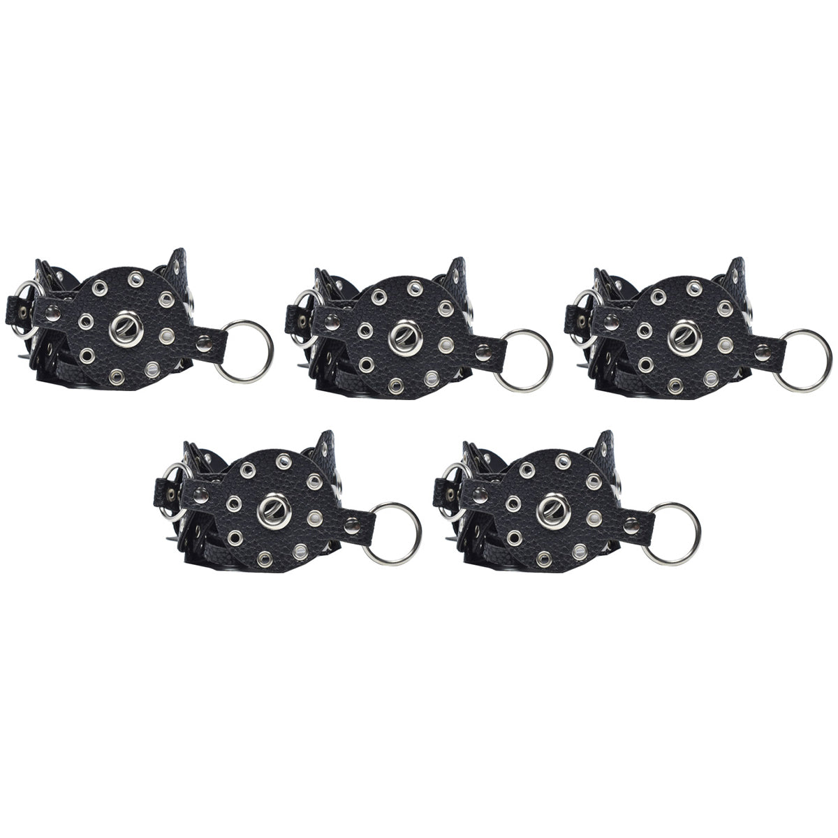 Contiene cinco cintos faja con tachas de un mismo modelo en color negro.