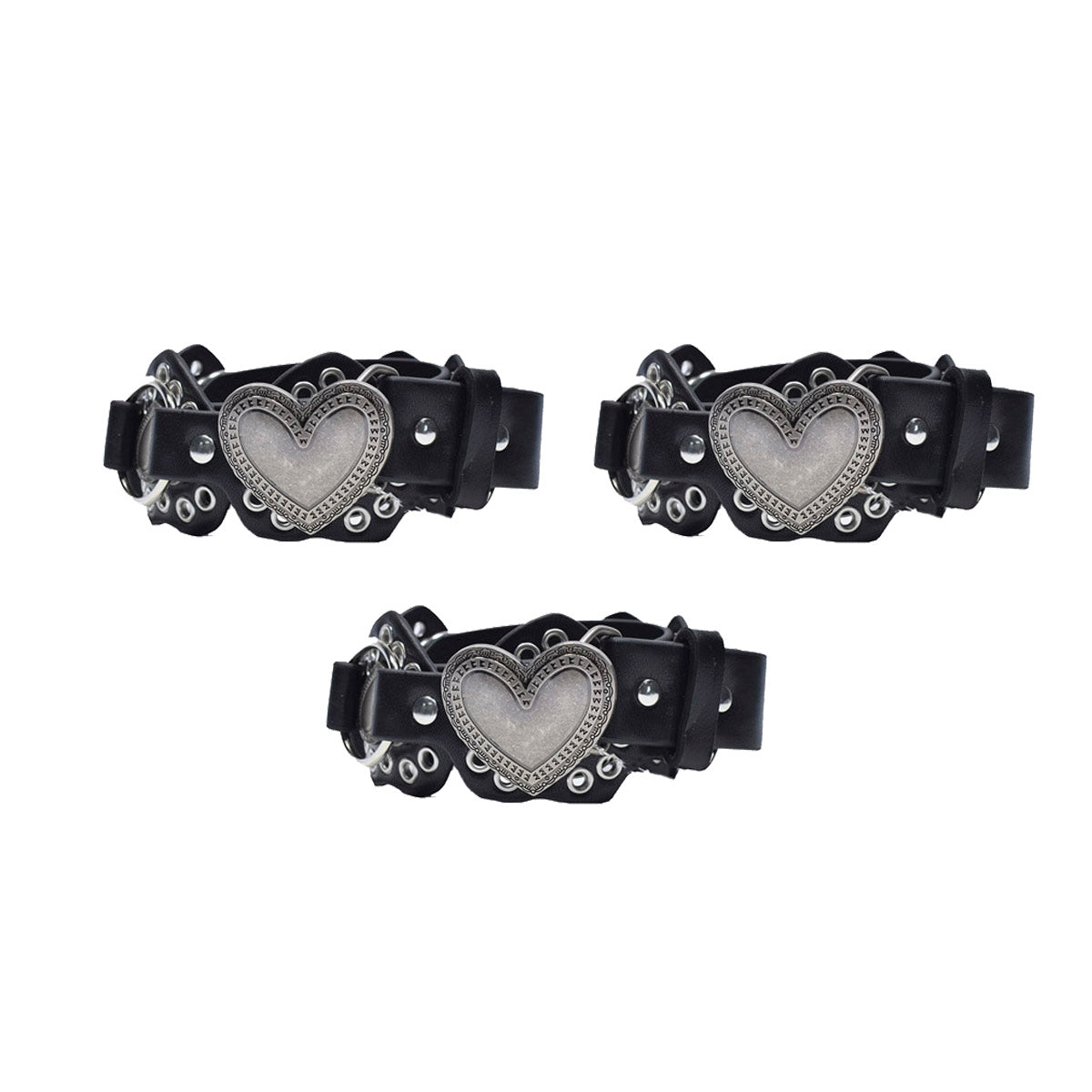 Contiene tres cintos faja con tachas de un mismo modelo.