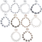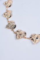 Contiene 10 cintos cadena surtidos, 5 modelos dorados y 5 modelos plateados.