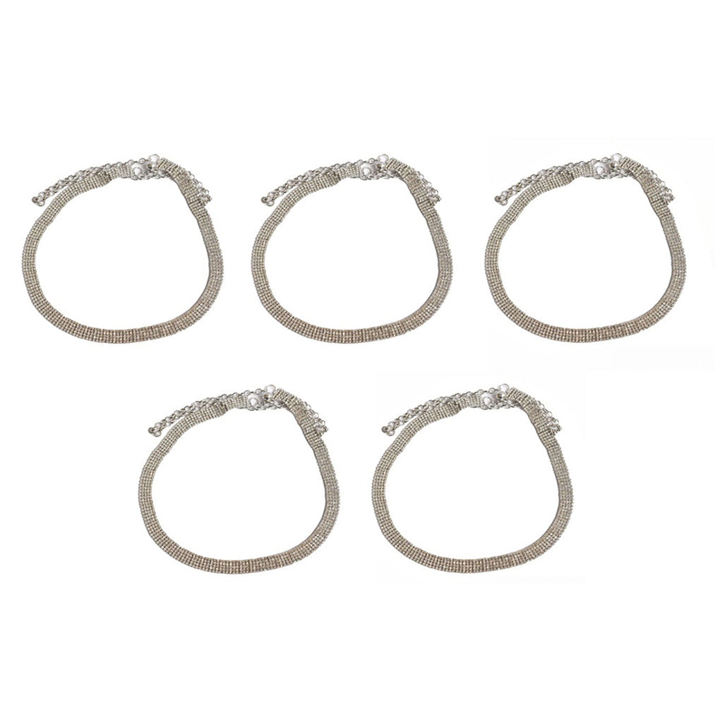 Contiene: 5 cinturones cadena con strass de 5 lineas en plateado