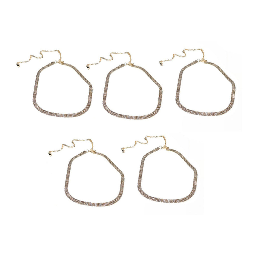 Contiene: 5 cinturones cadena con strass de 3 lineas en dorado
