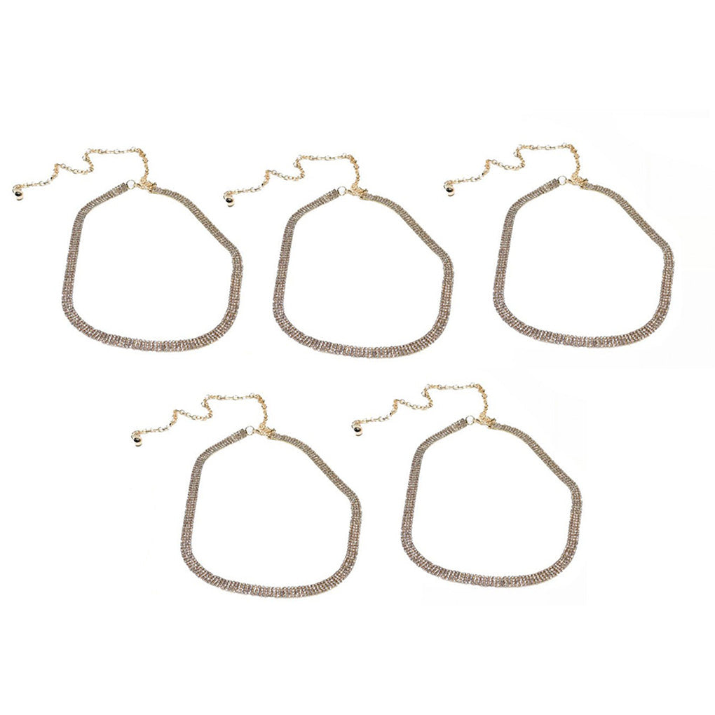 Contiene: 5 cinturones cadena con strass de 4 lineas en dorado