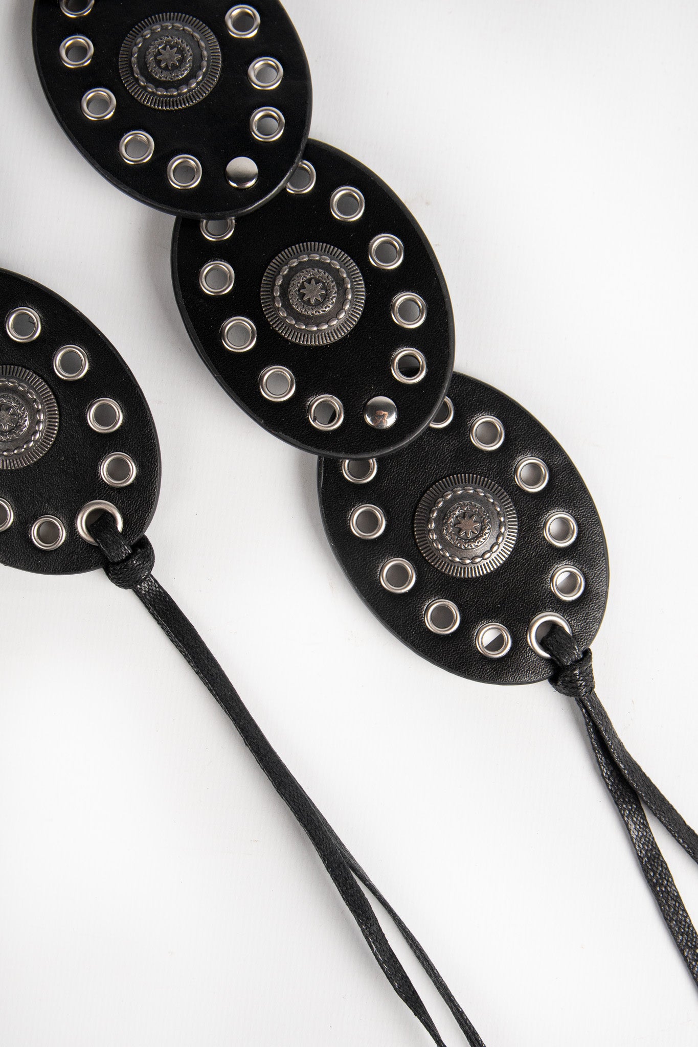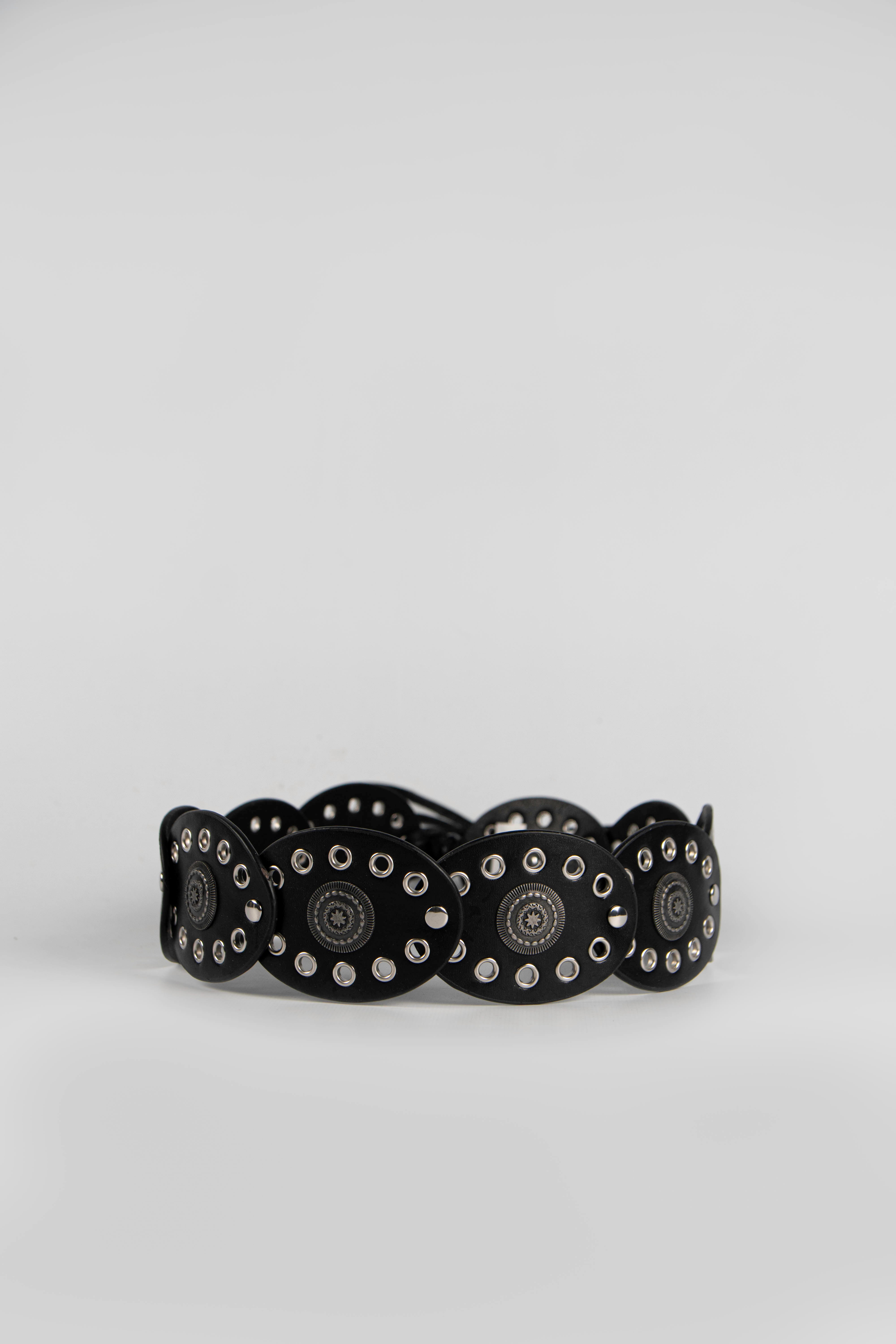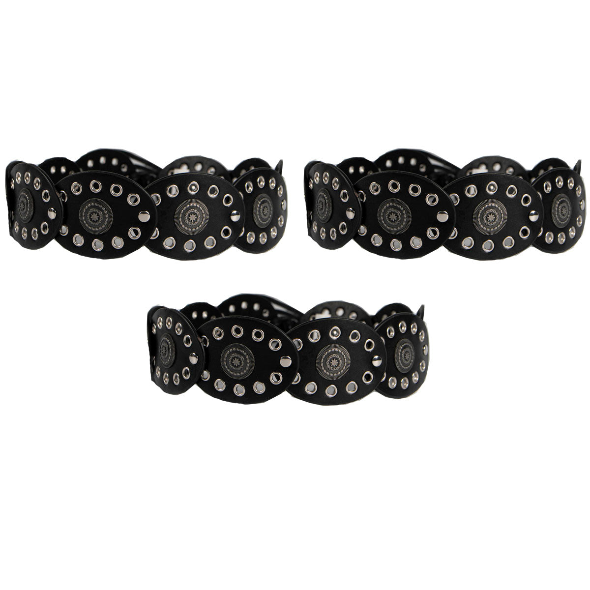 Contiene 3 cintos faja de un mismo modelo en color negro con detalles en plateado.