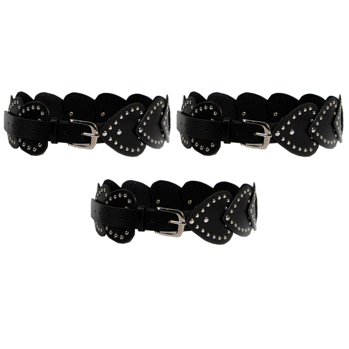Contiene 3 cintos faja de un mismo modelo en color negro con hebilla plateada.
