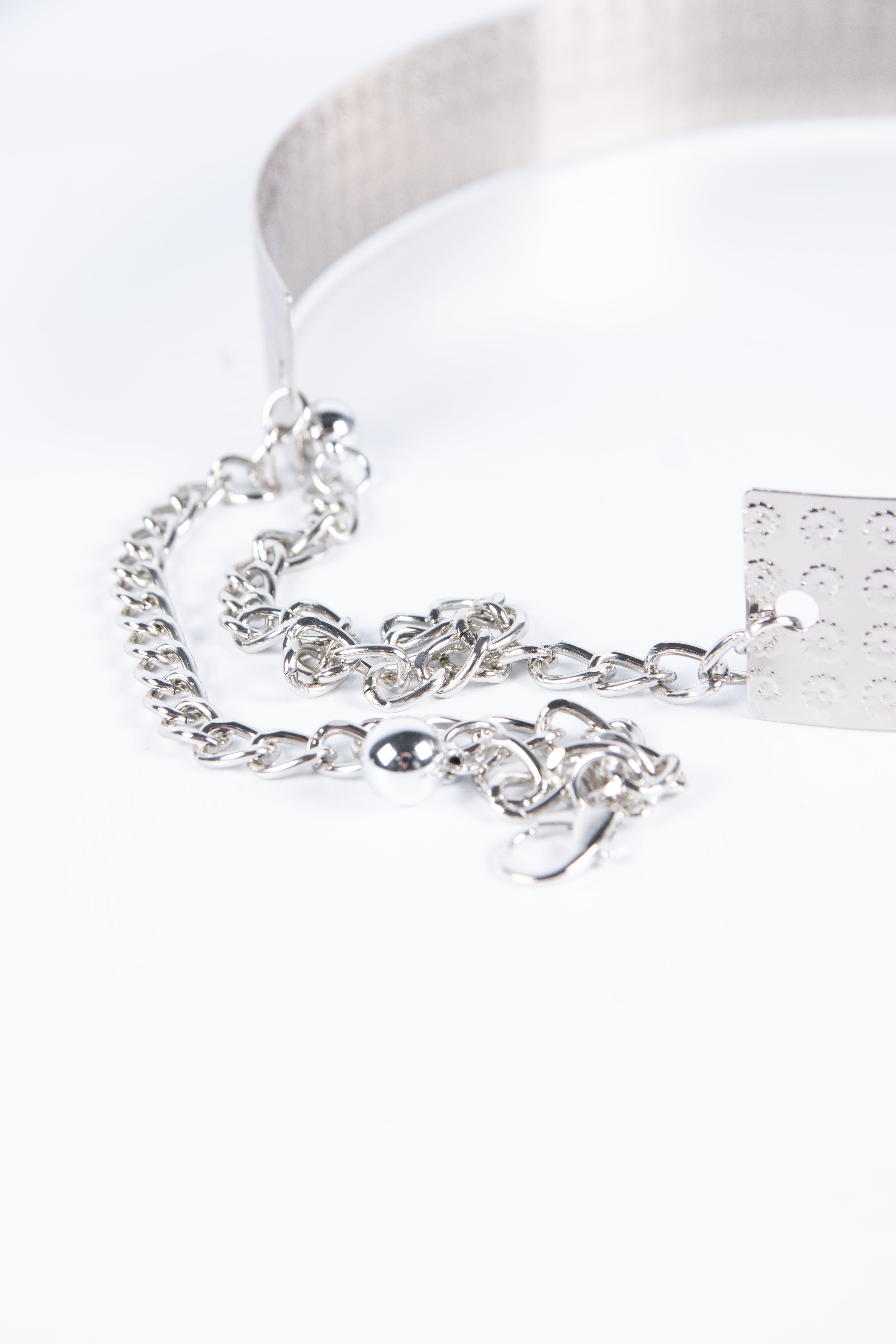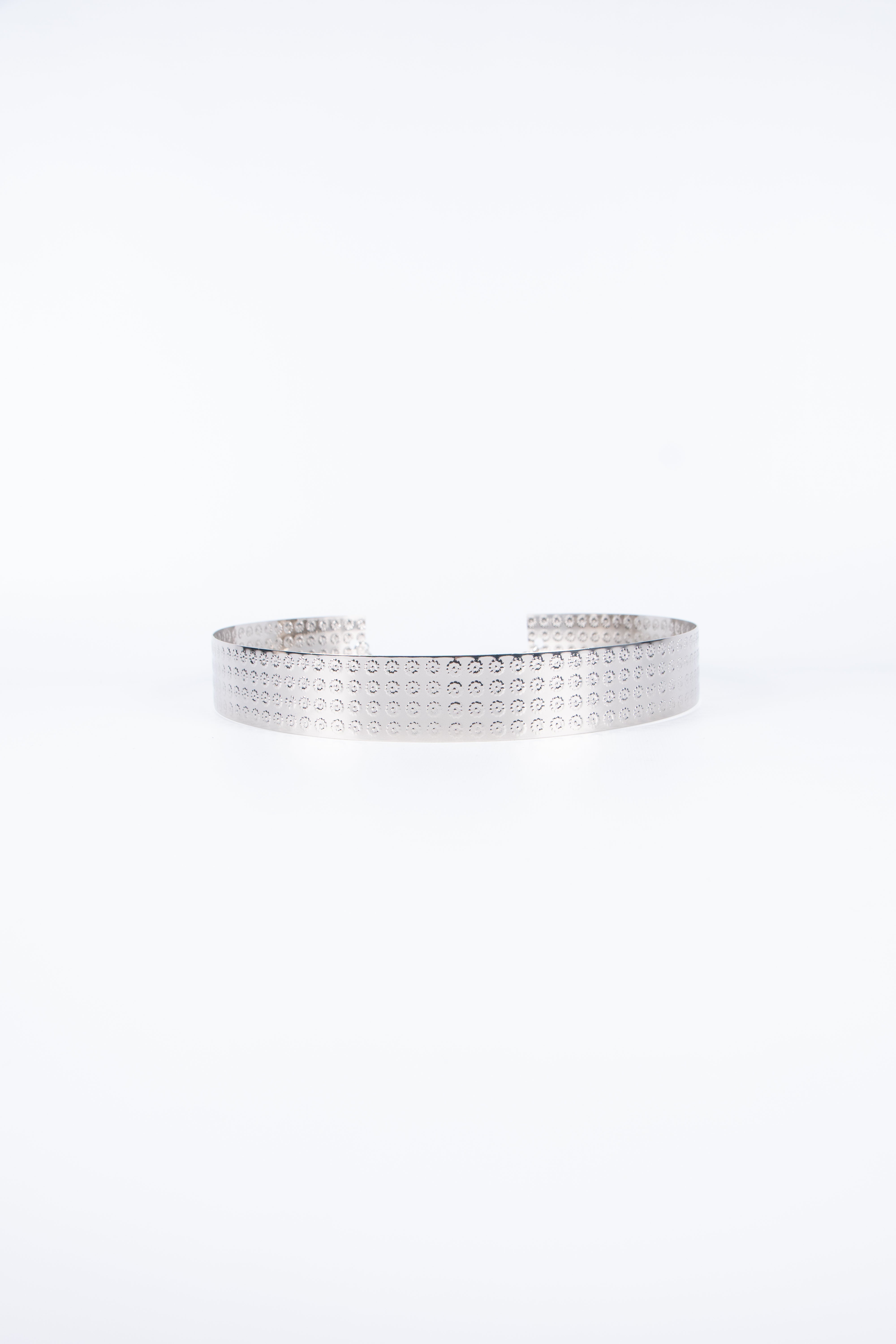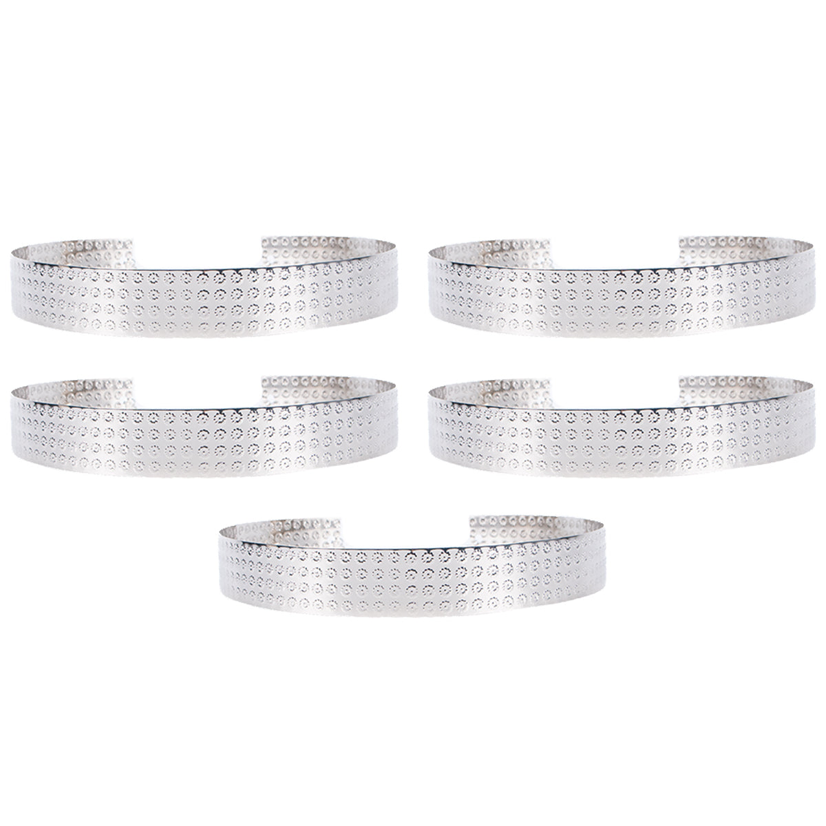 Contiene cinco cinturones rígidos de un mismo modelos en plateado.