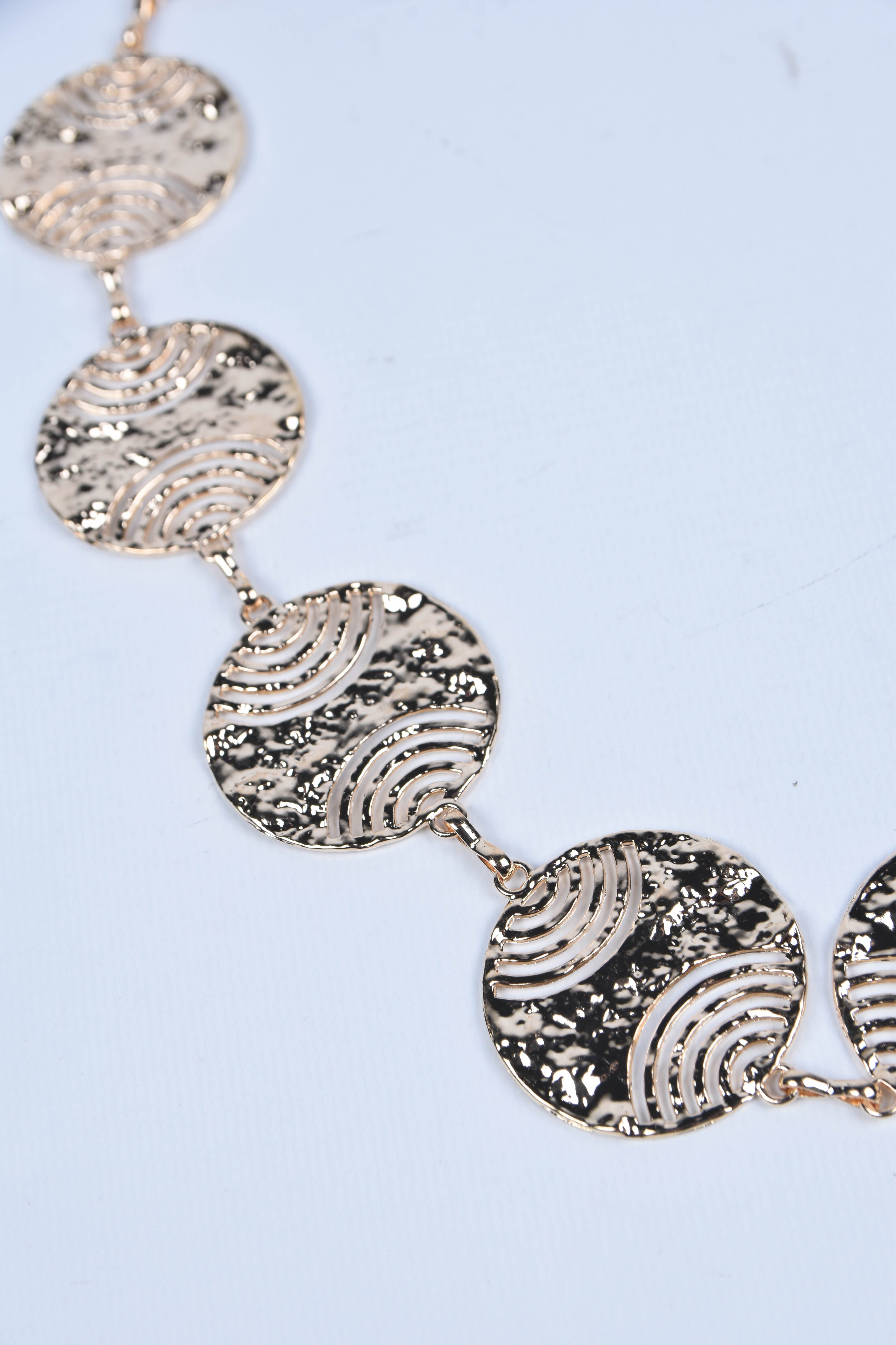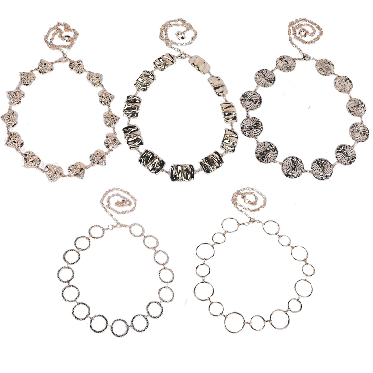 Contiene 5 cinturones cadena dorados en modelos surtidos.