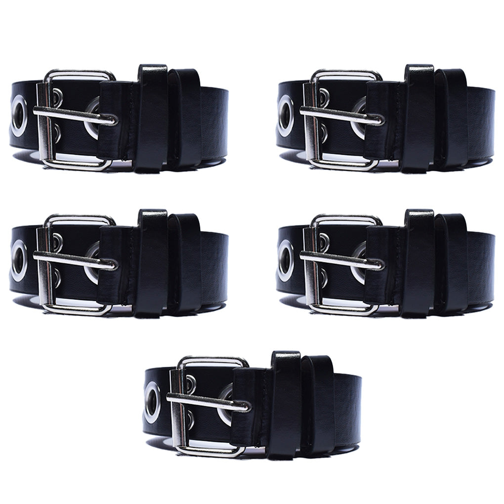 Contiene cinco cintos importados con tachas de un mismo modelo