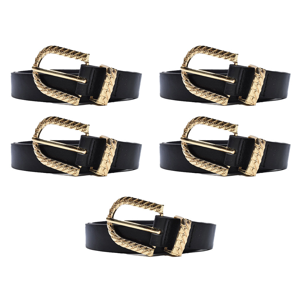 Contiene cinco cintos importados con hebilla dorada de un solo modelo.