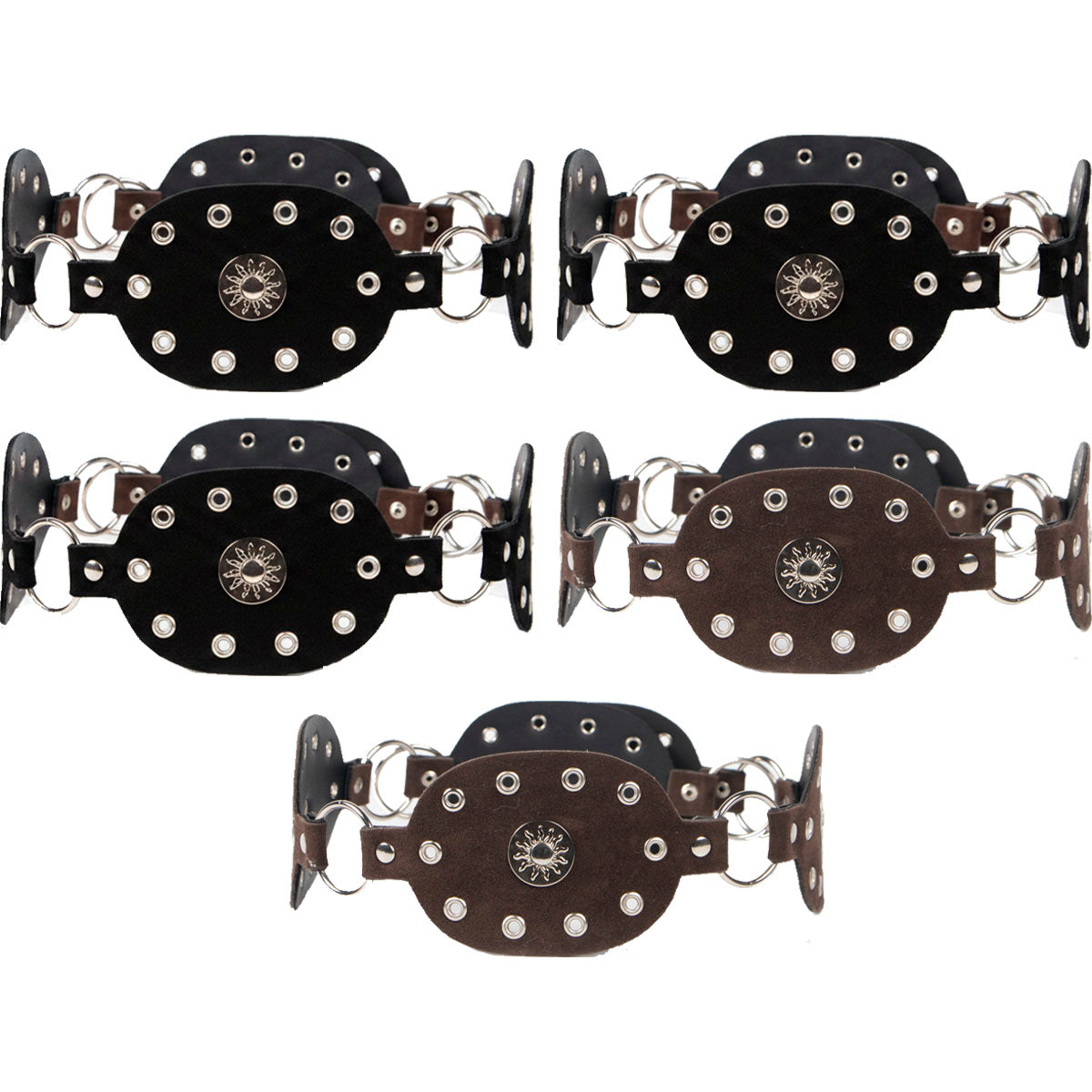 Contiene 5 cintos fajas de un mismo modelo en color negro y marrón.