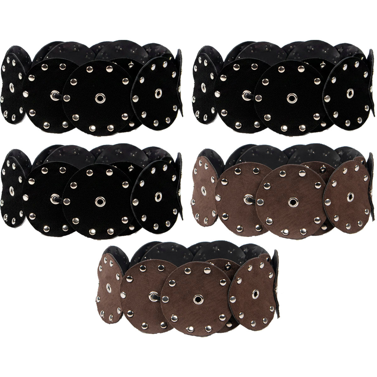 Contiene cinco cintos faja de un mismo modelo en color negro y marrón.