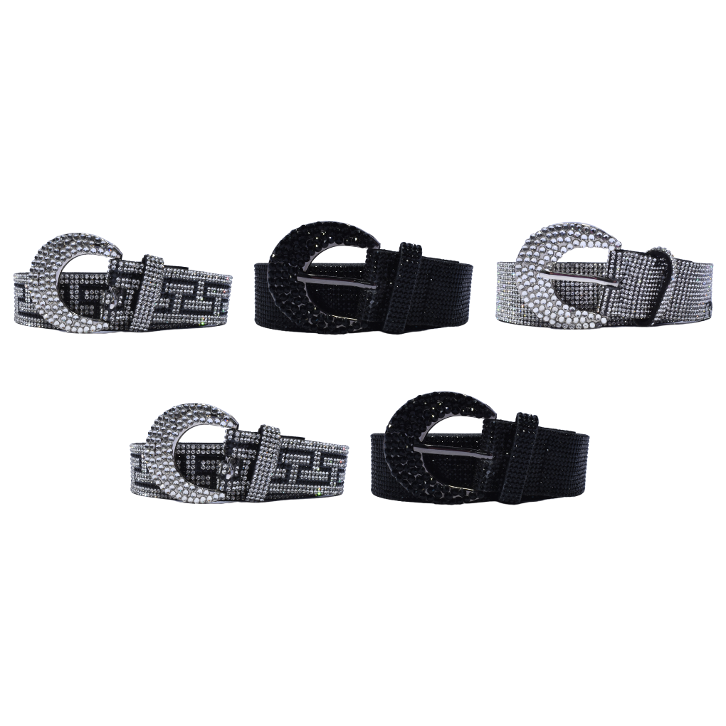 Contiene: 5 cintos lisos con strass de un diferentes modelos.