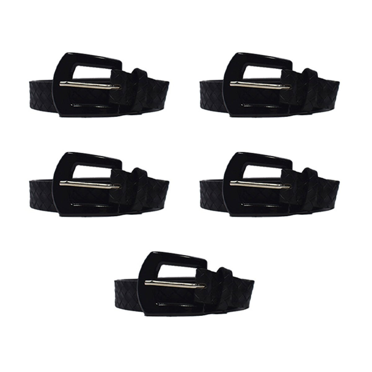 Contiene cinco cintos trenzados con hebilla negra de un mismo modelo.