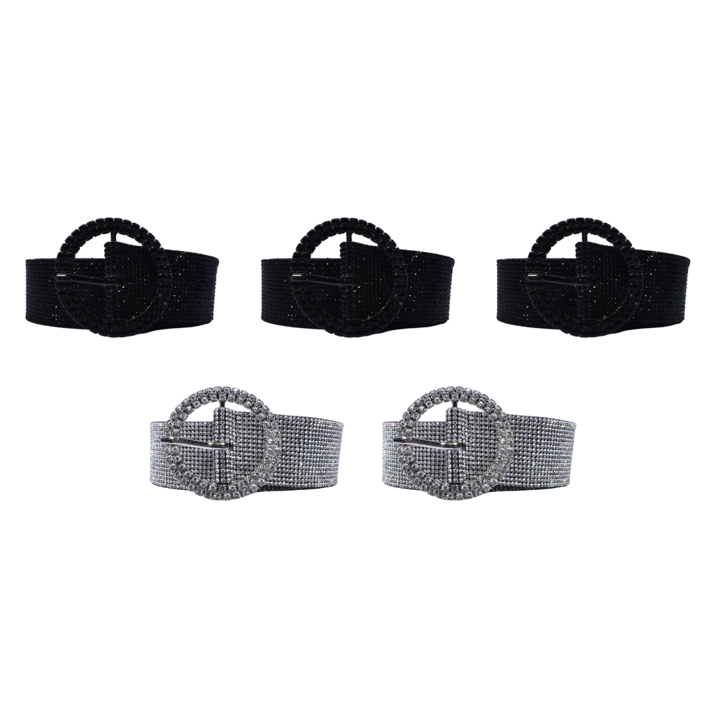 Contiene: 5 cintos lisos con strass de diferentes modelos