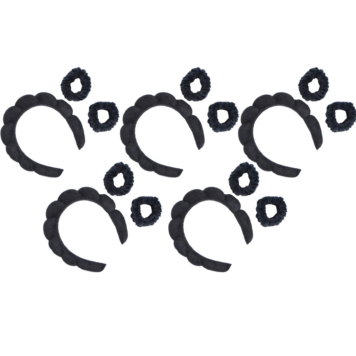 Contiene cinco vinchas de maquillaje de un mismo modelo.