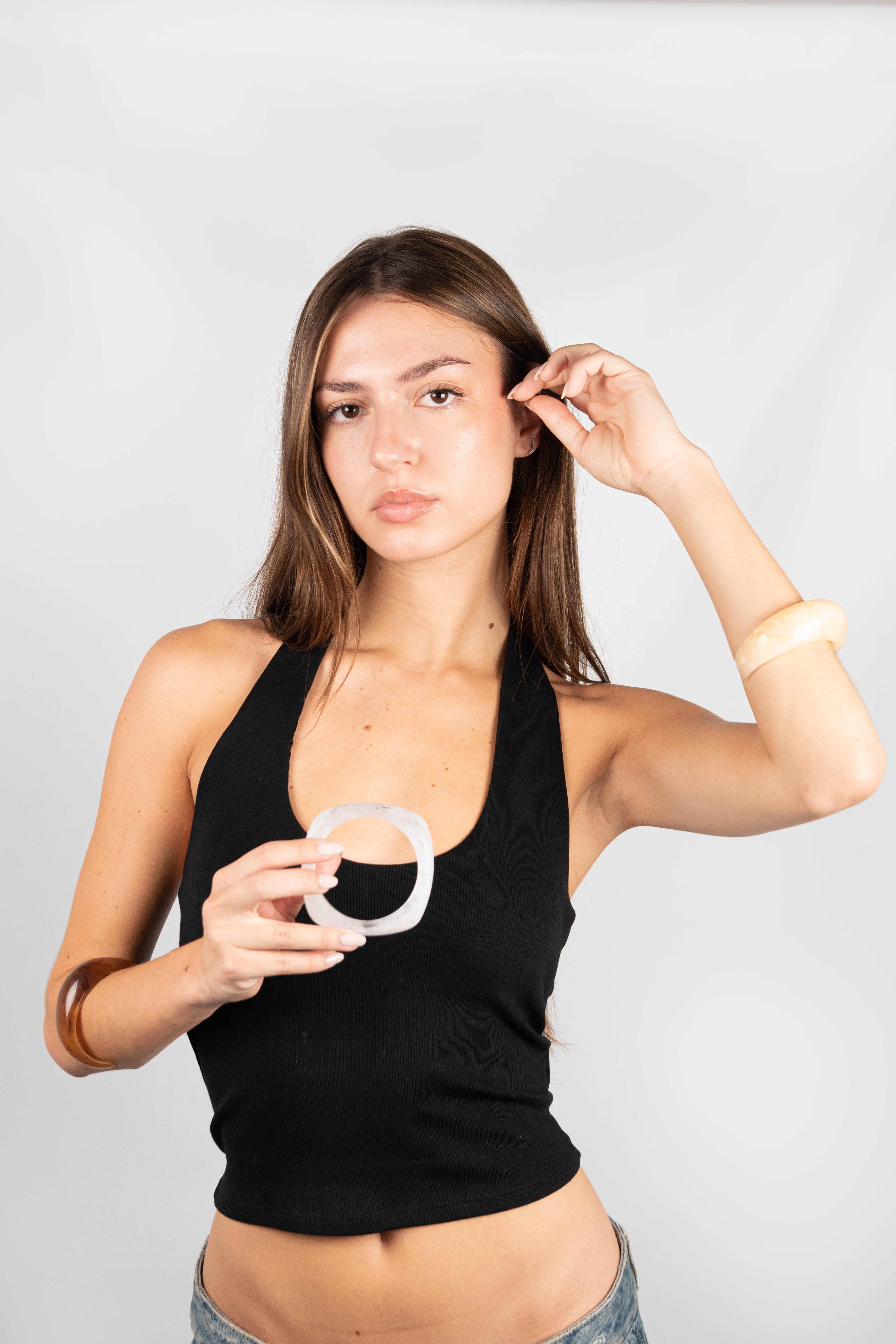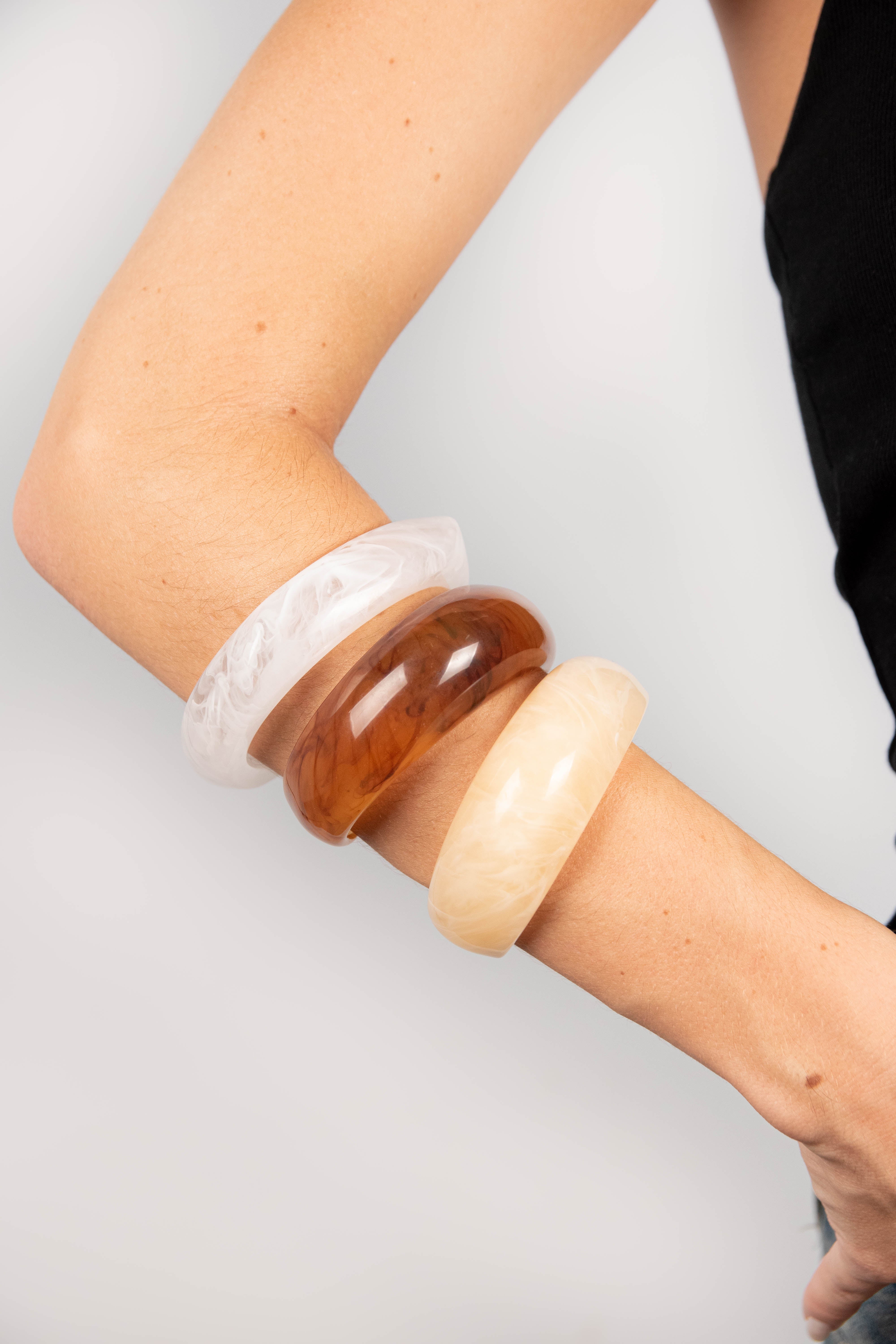 Contiene 10 pulseras de acrílico de diferentes modelos y en diferentes colores.