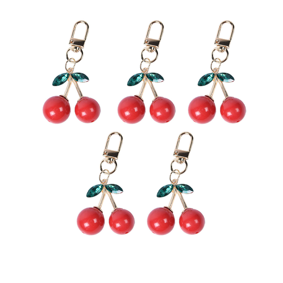 Contiene 5 llaveros de cerezas de un mismo modelo.