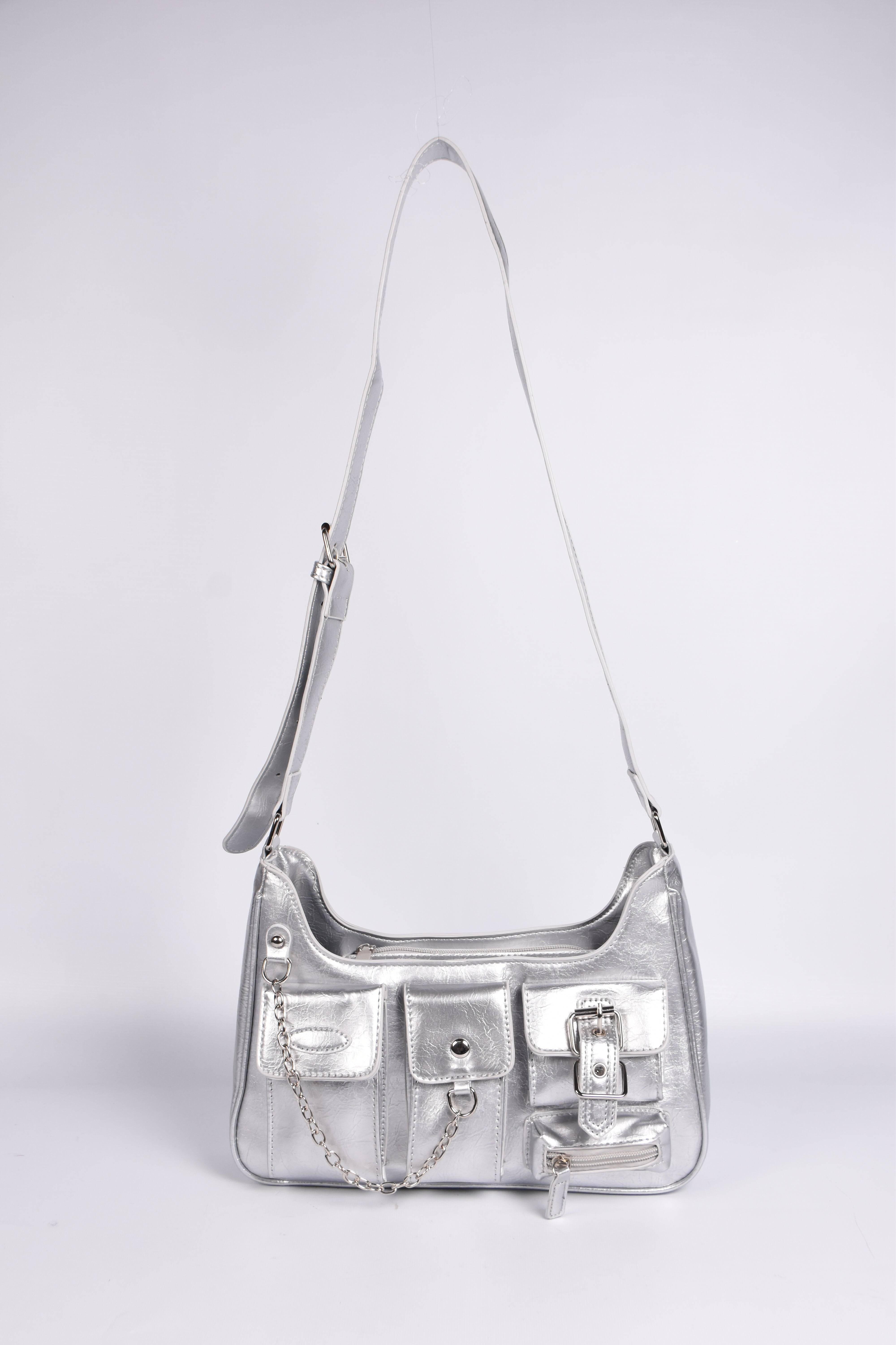 contiene tres mini bags de un mismo modelo en color negro y plateado.
