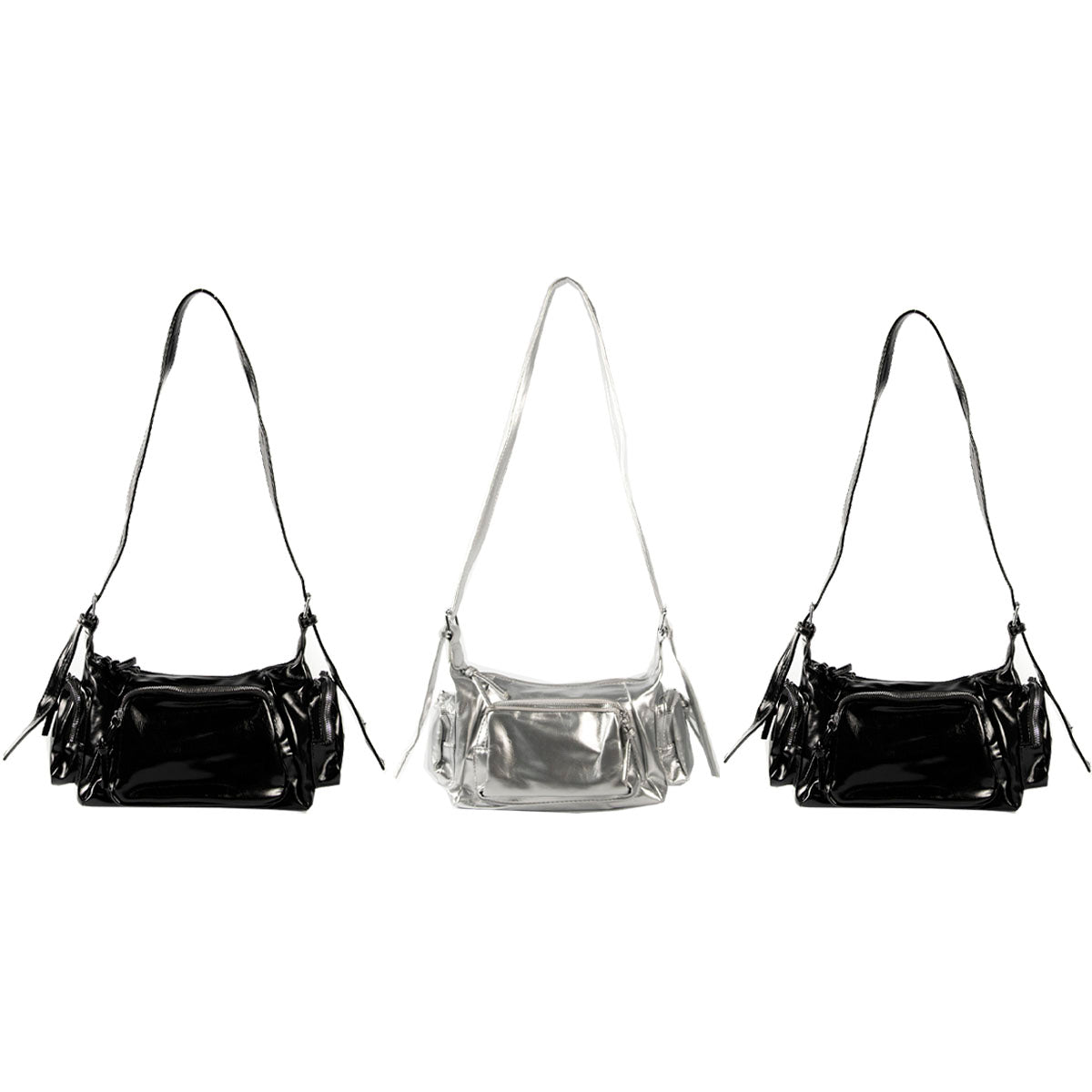 Contiene 3 mini bags de un mismo modelo en color negro y plateado.