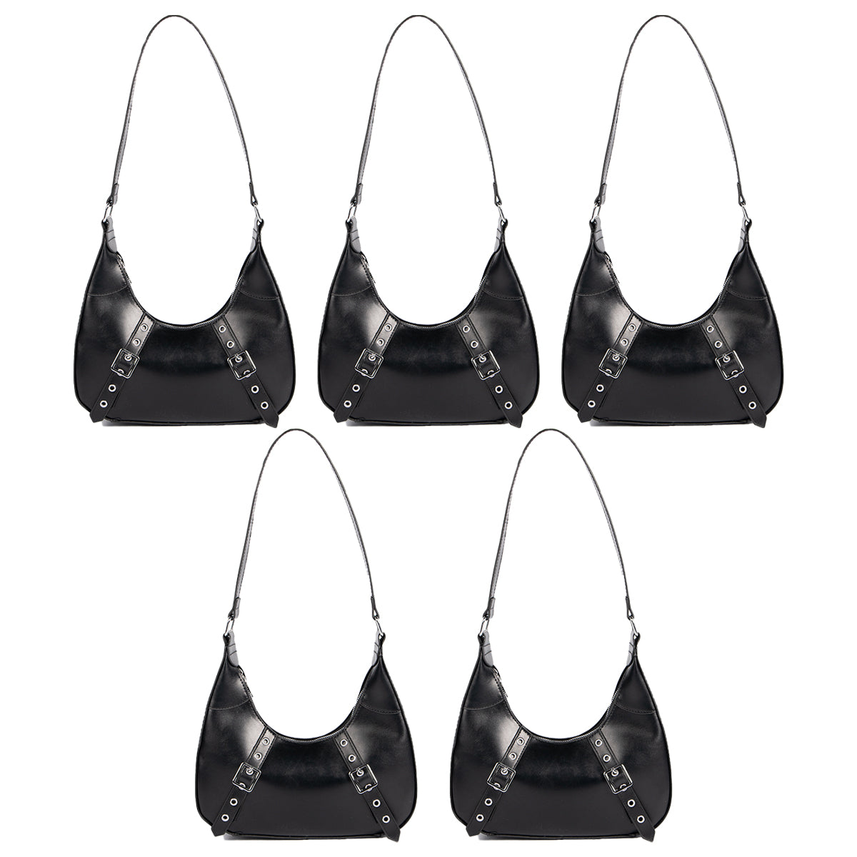 Contiene cinco mini bags de un mismo modelo en color negro.