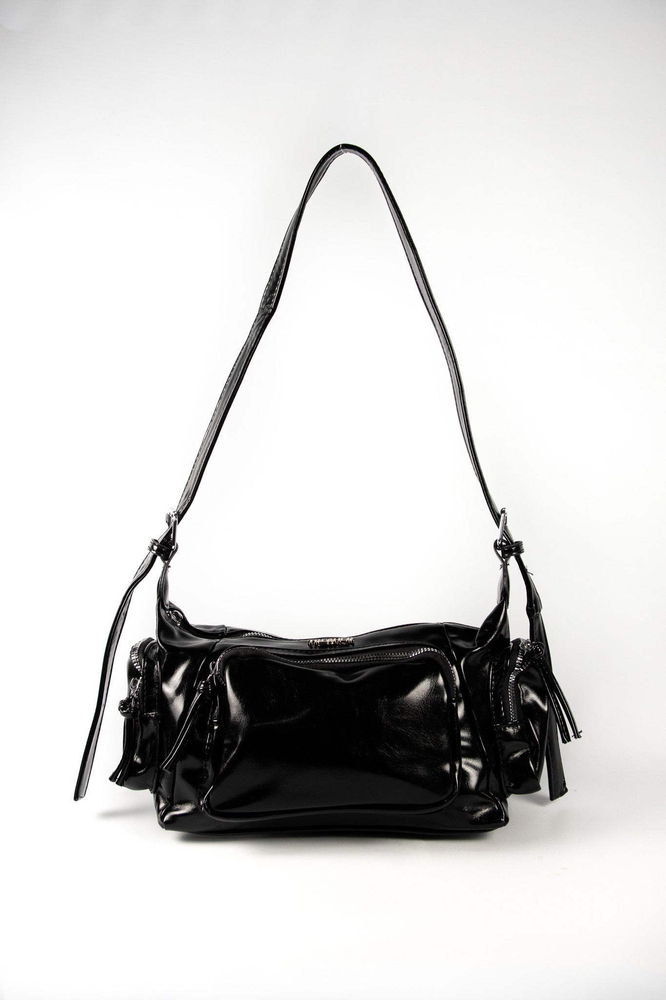contiene tres mini bags de un mismo modelo en color negro y plateado