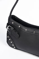 Mini bolso de cuero ecológico con tachas y hebillas.