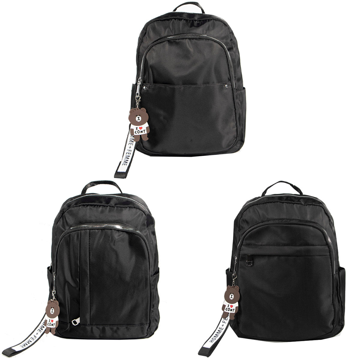 Contiene 3 mochilas importadas de diferentes modelos en color negro.