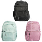 contiene tres mochilas de un mismo modelo en colores surtidos.