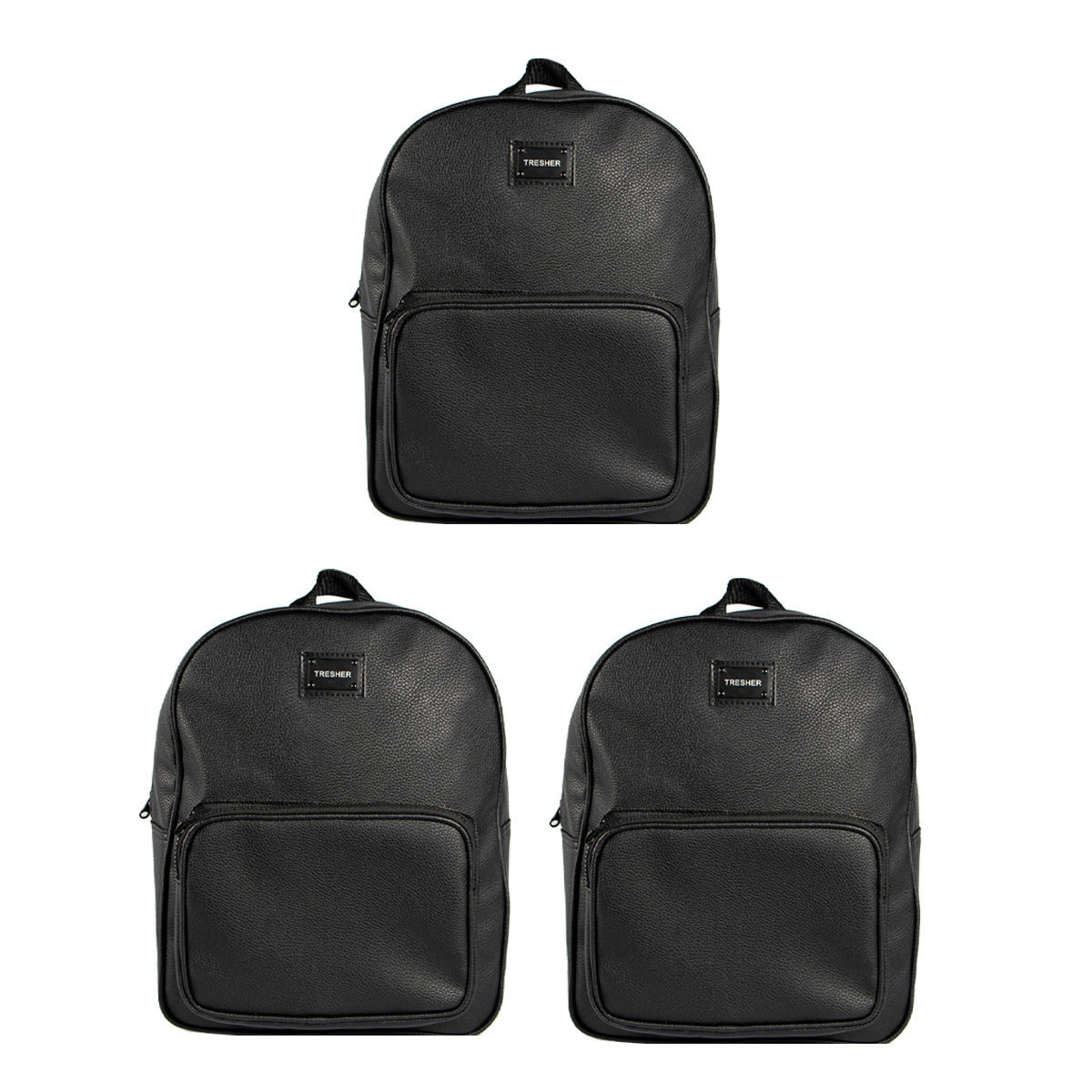 Contiene tres mochilas Grande de eco cuero de un mismo modelo en color negro.