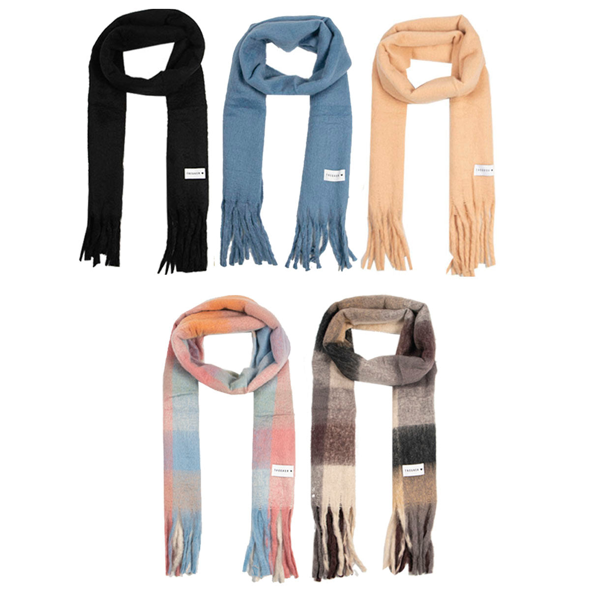 Contiene cinco bufandas nubes de diferentes modelo en colores surtidos.