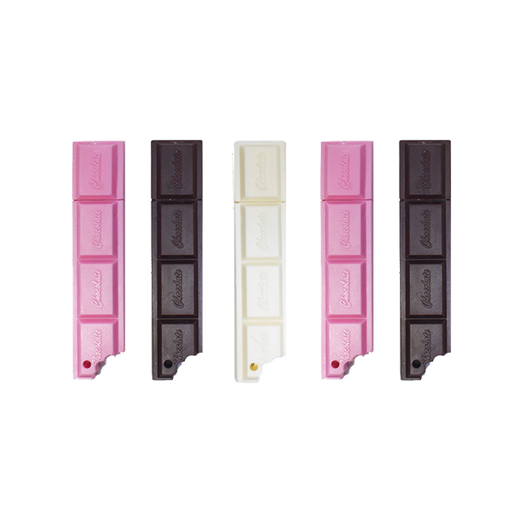 Contiene: 5 lapiceras en forma de chocolate de diferentes colores.