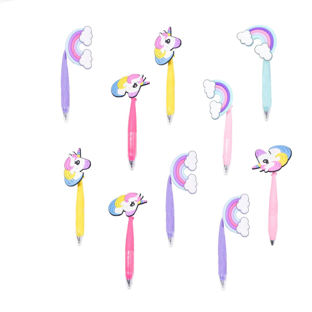 - Contiene: 10 lapiceras de UNICORNIO en fucsia. Tinte azul