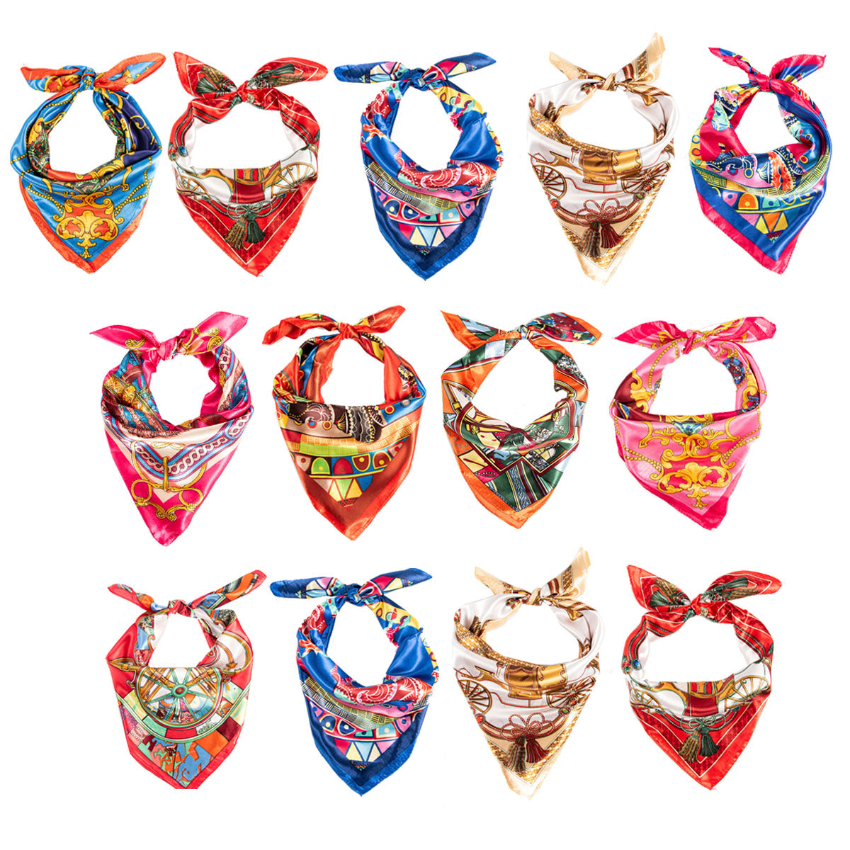 contiene diez pañuelos de 60x60 de diferentes modelo