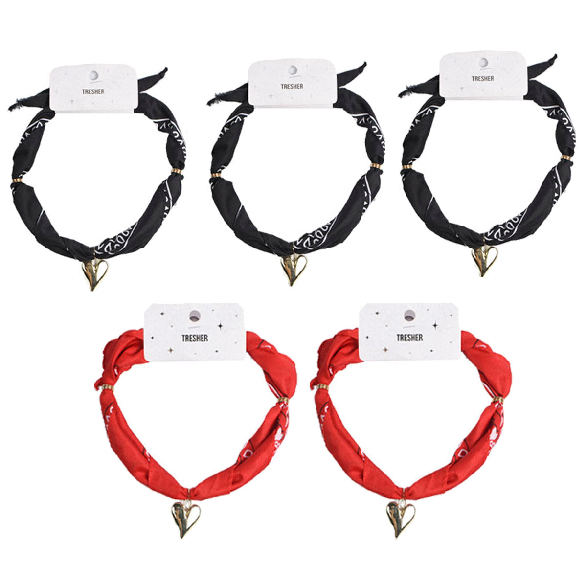 Contiene 5 corbatines pañuelos de un mismo modelo en negro y rojo.