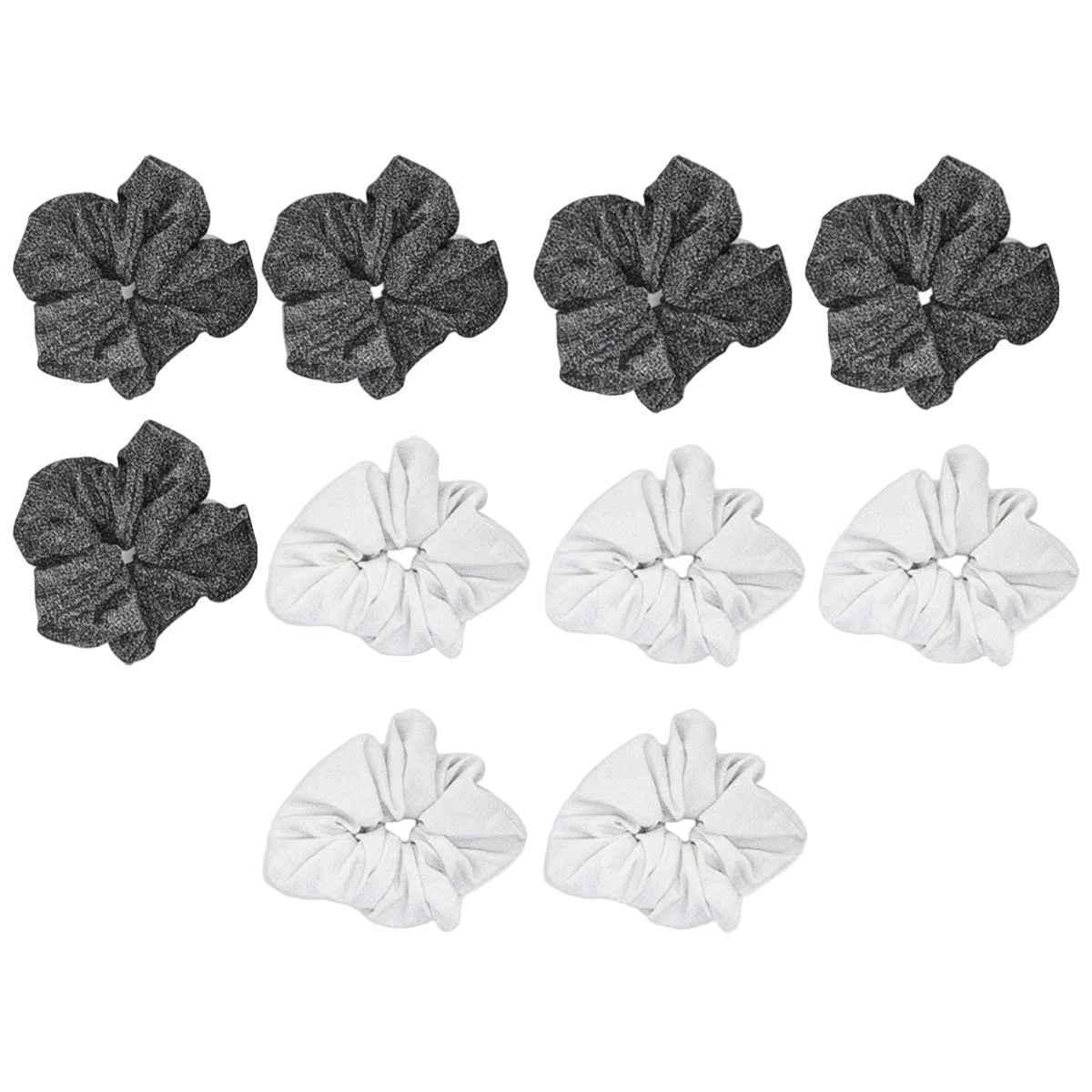 - Contiene: 10 scrunchies sbrillosas de un mismo modelo en dos colores disponibles