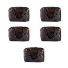 Contiene cinco porta cosméticos de un mismo modelo en color negro.