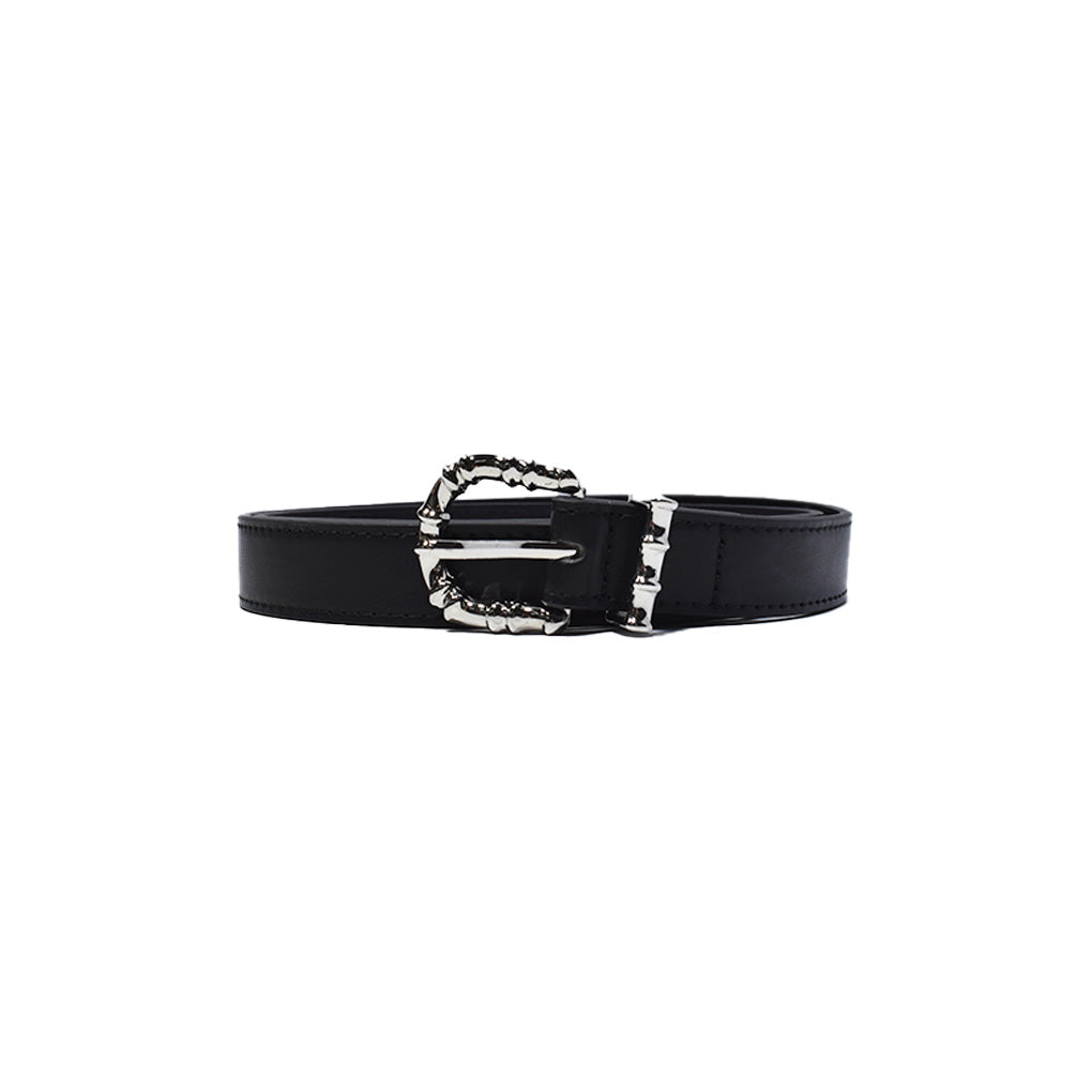 Cinto eco cuero importado liso con hebilla plateada